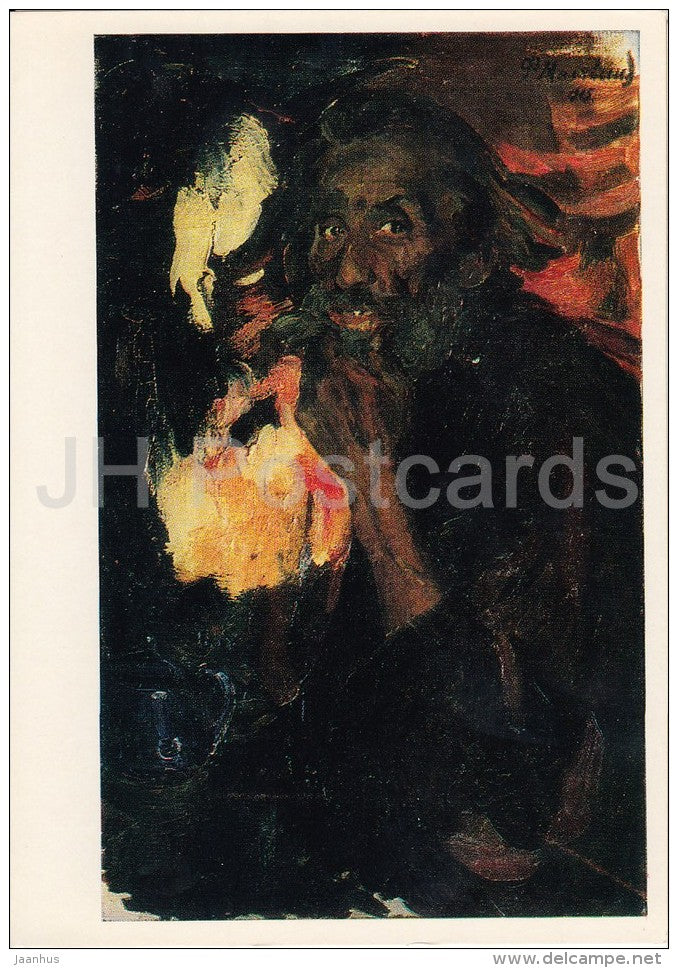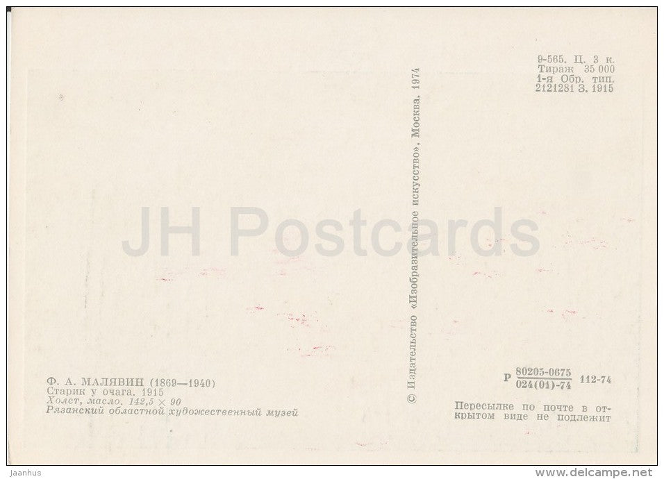 painting by F. Malyavin - Old man at the hearth , 1915 - Russian art - 1974 - Russia USSR - unused
