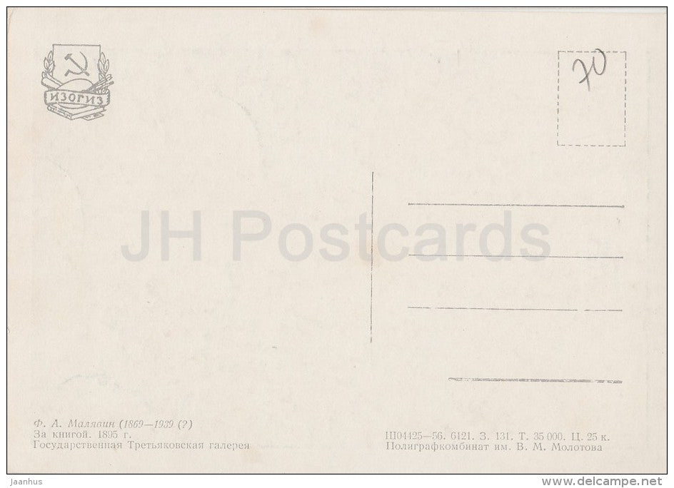 painting by F. Malyavin - Woman reading the book , 1895 - Russian art - 1956 - Russia USSR - unused