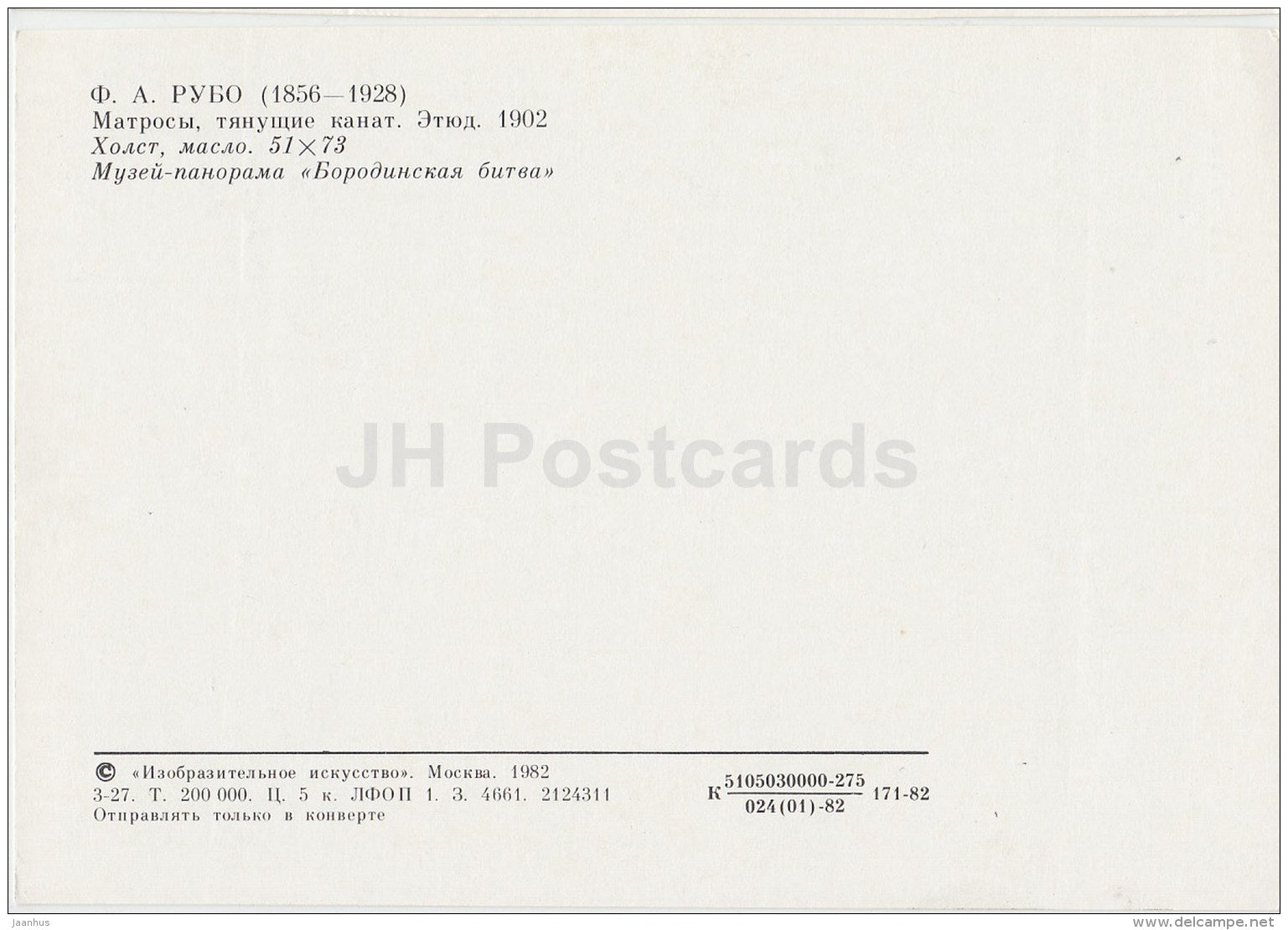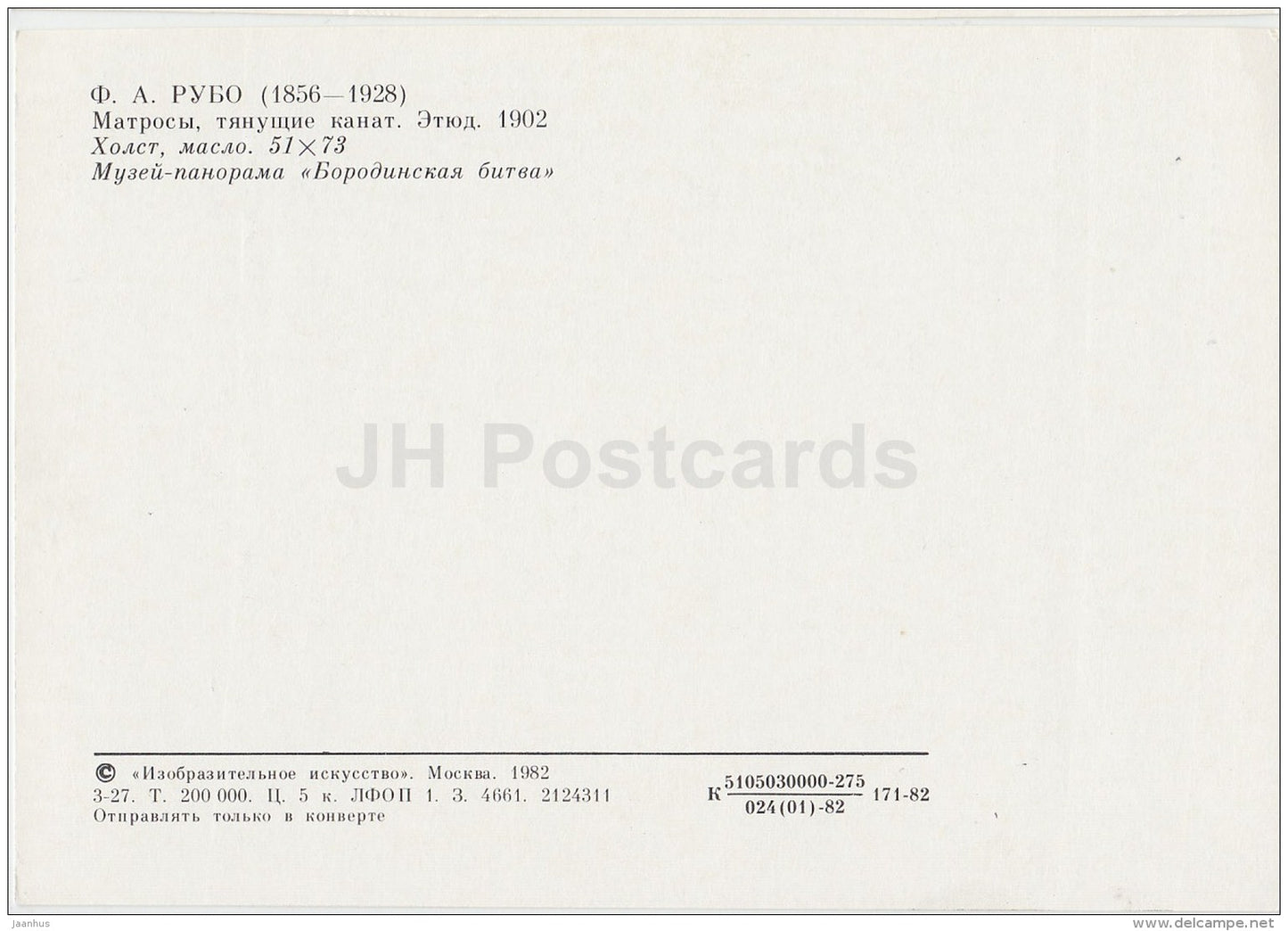 painting by F. Roubaud - The Sailors pulling the rope , 1902 - Russian art - 1982 - Russia USSR - unused