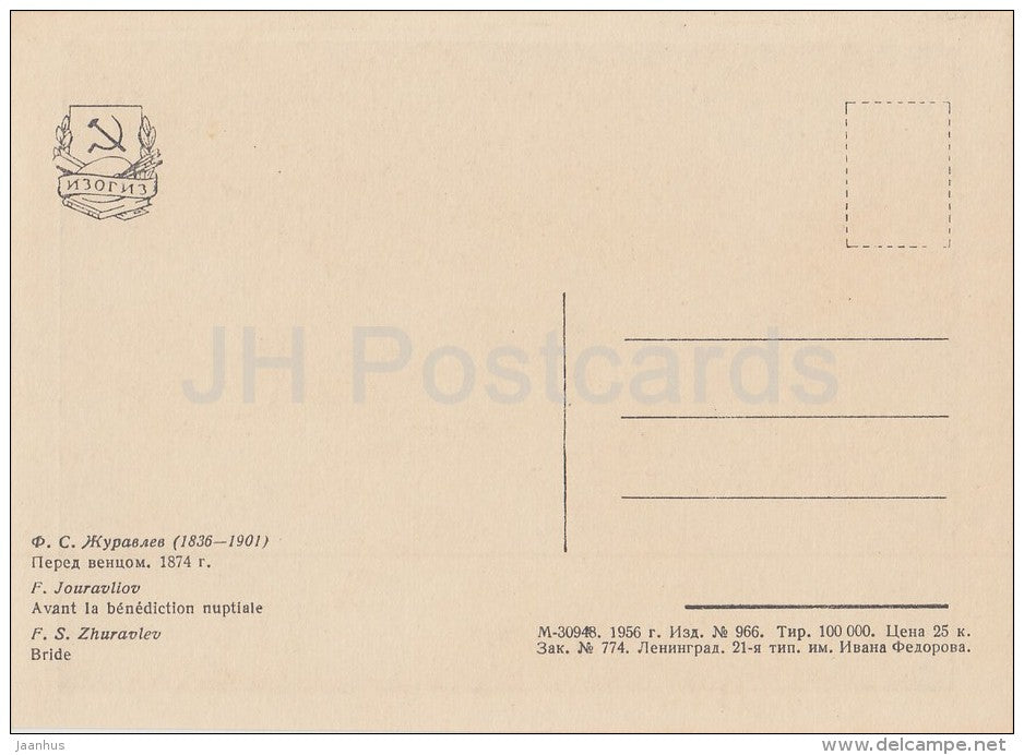 painting by F. Zhuravlyev - Bride , 1874 - wedding - Russian art - 1956 - Russia USSR - unused
