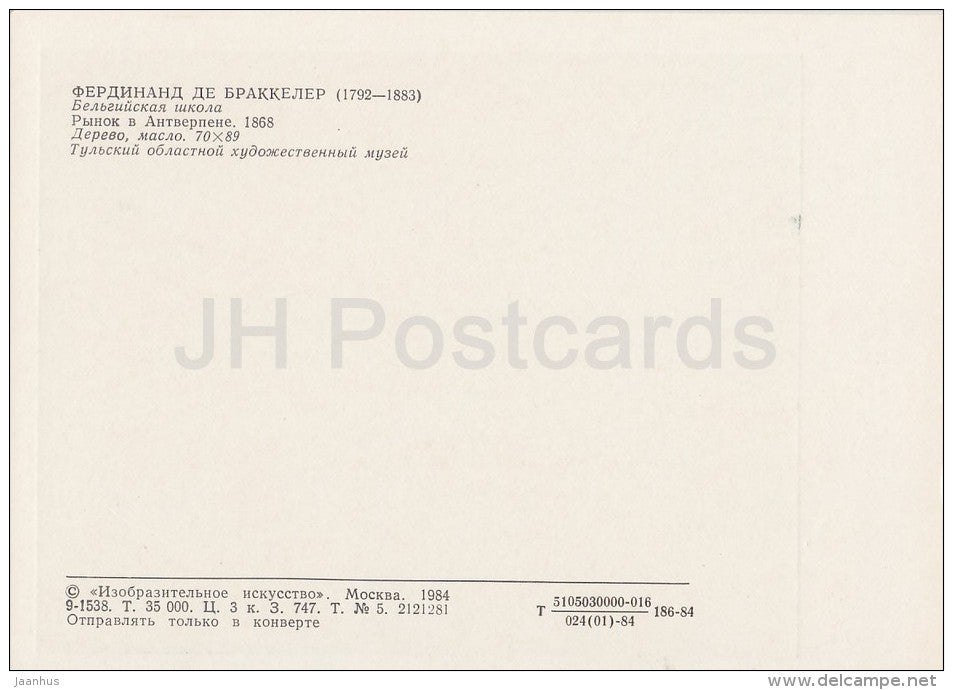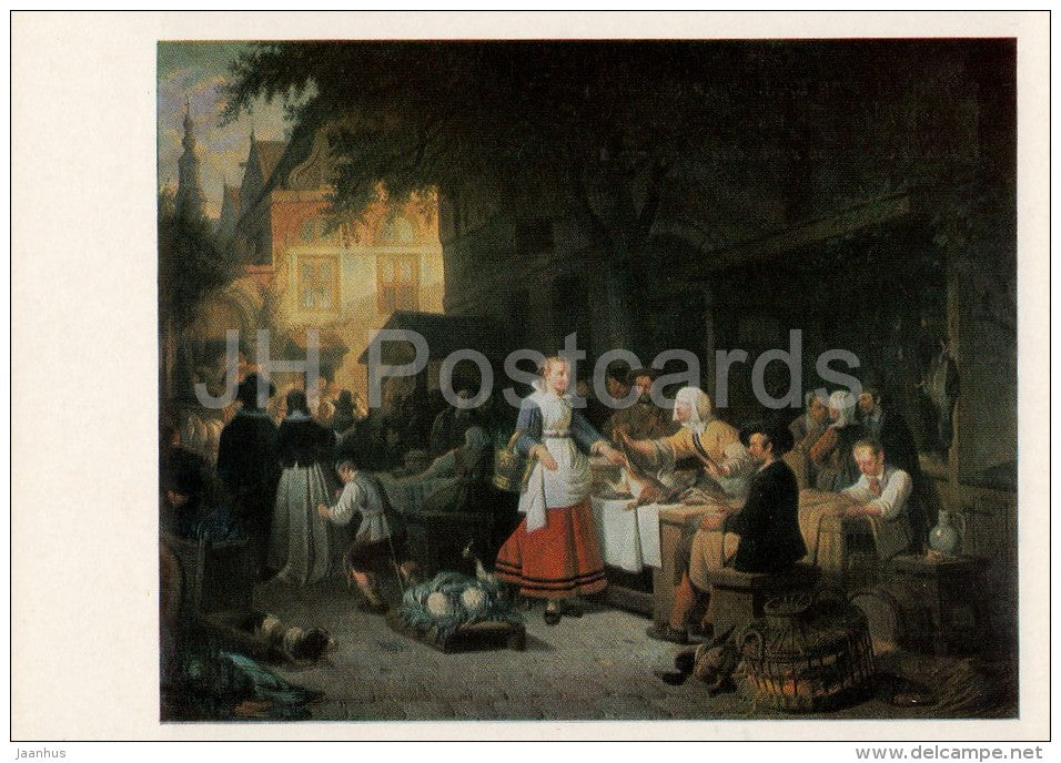 painting by Ferdinand De Braekeleer - Market in Antwerpen , 1868 - Belgian art - Russia USSR - 1984 - unused