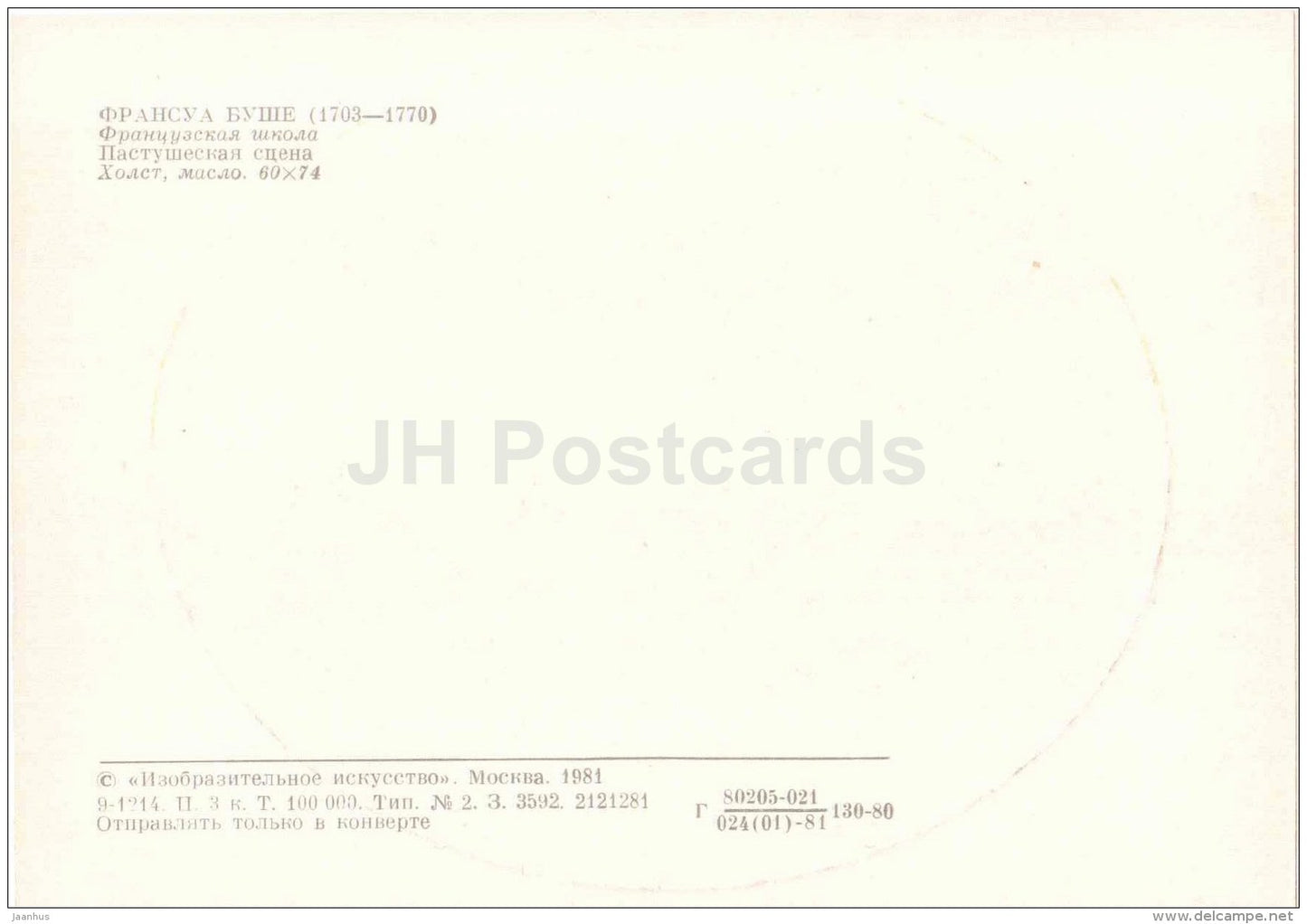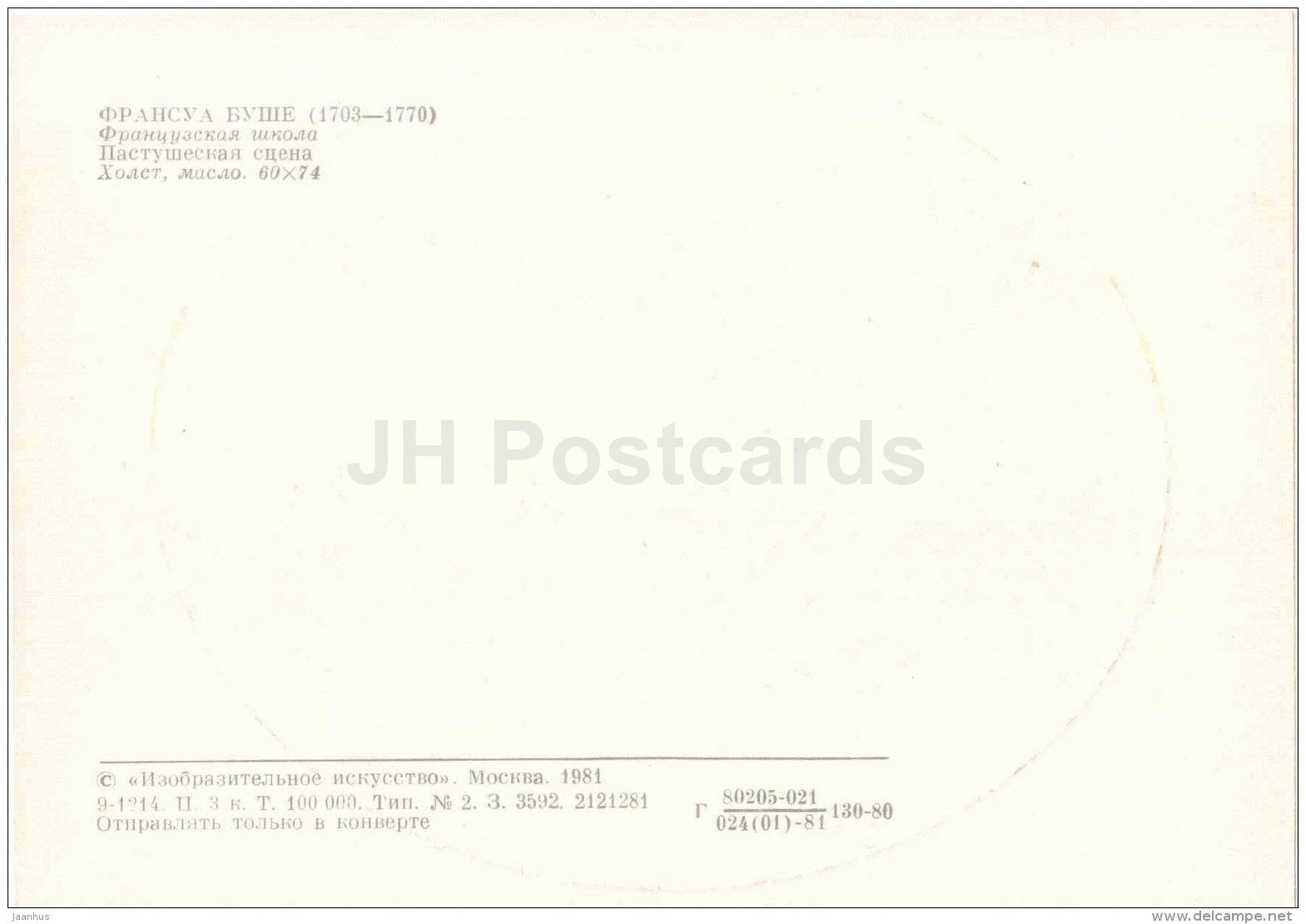 painting by Francois Boucher - Pastoral scene - dog - French art - France - 1981 - Russia USSR - unused