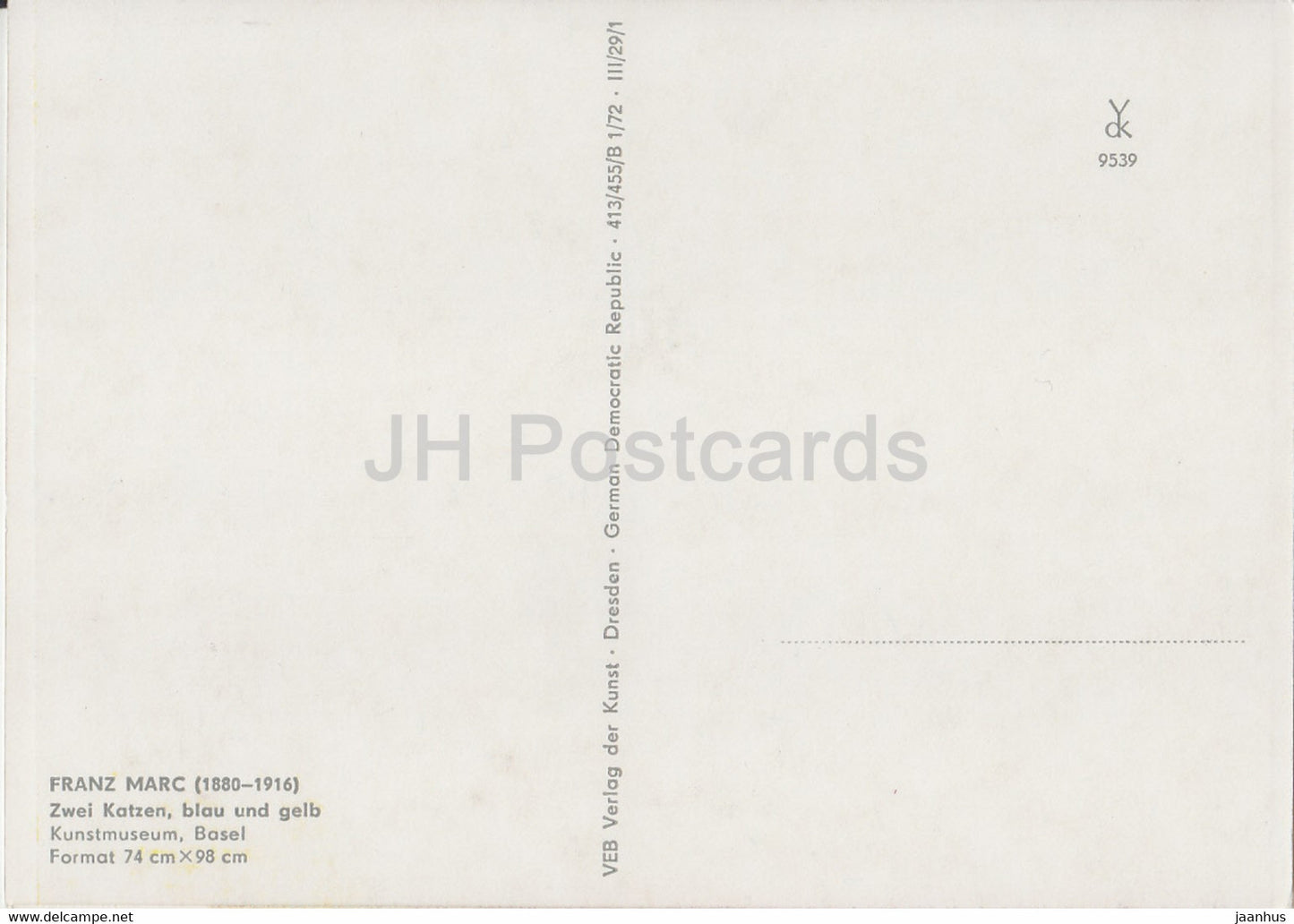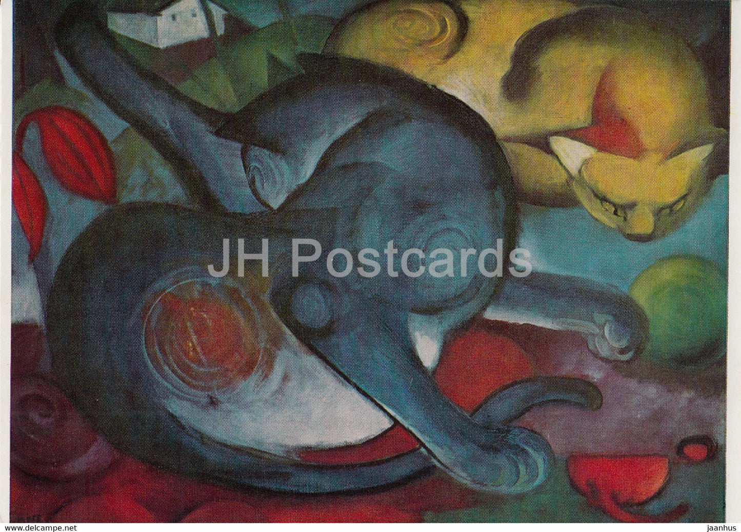 painting by Franz Marc - Zwei Katzen , blau und gelb - cat - German art - Germany DDR - unused