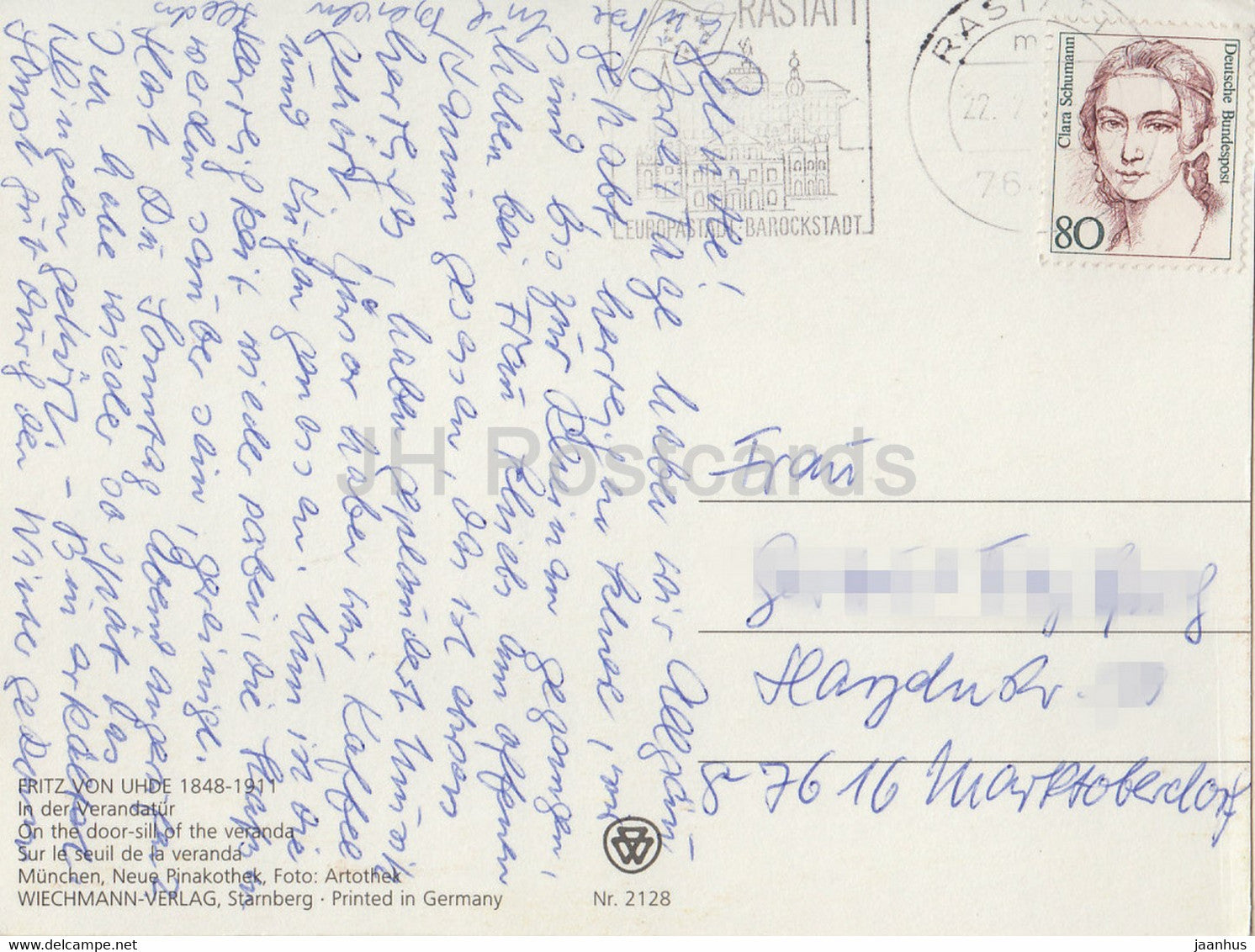 painting by Fritz von Uhde - In der Verandatur - On the Door sill of the Veranda - German art - Germany - used