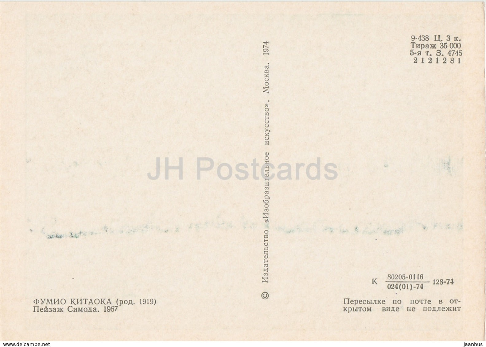 painting by Fumio Kitaoka - Shimoda Landscape , 1967 - Japanese art - 1974 - Russia USSR - unused