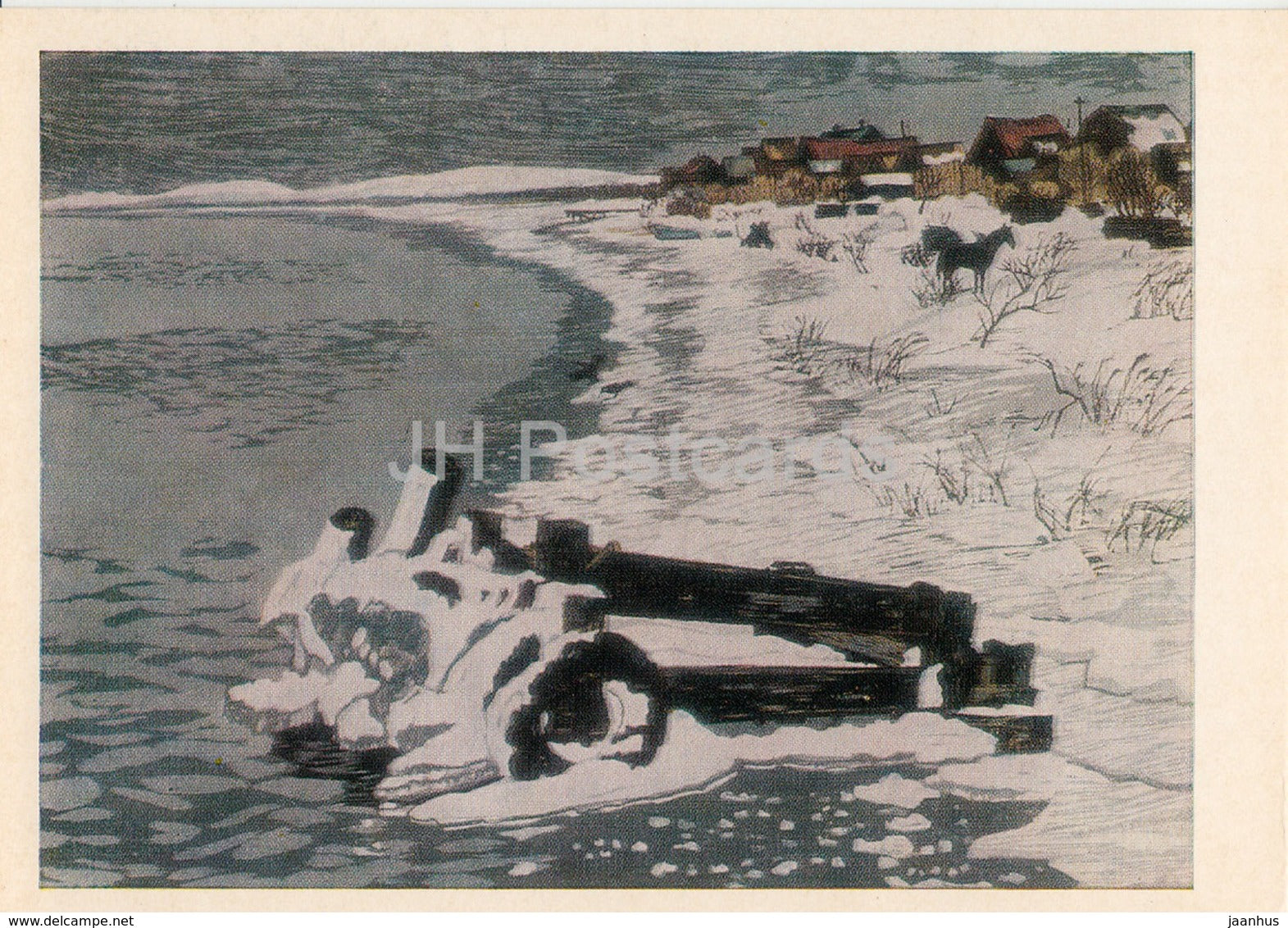 painting by Fumio Kitaoka - Winter Lake , 1969 - Japanese art - 1974 - Russia USSR - unused
