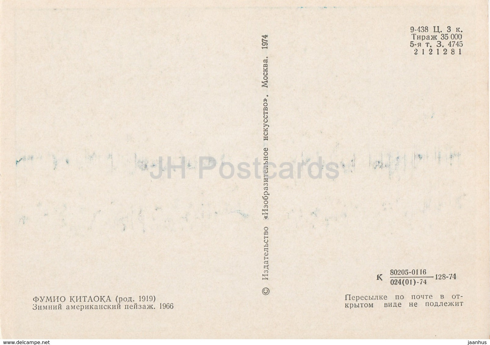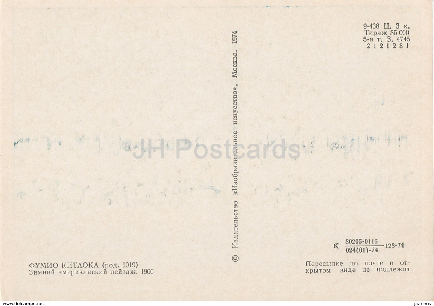 painting by Fumio Kitaoka - Winter view in America , 1966 - Japanese art - 1974 - Russia USSR - unused