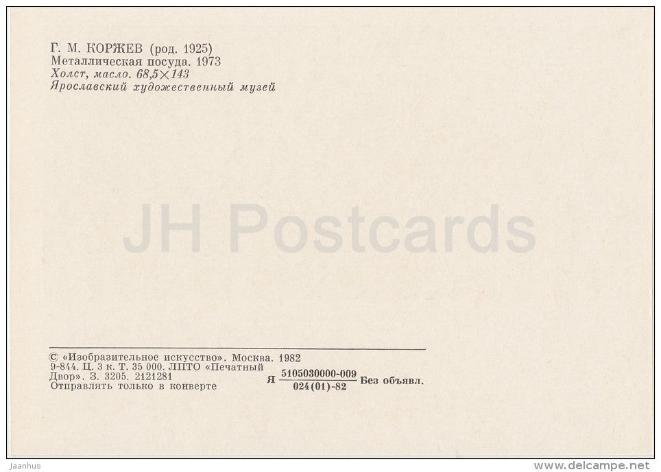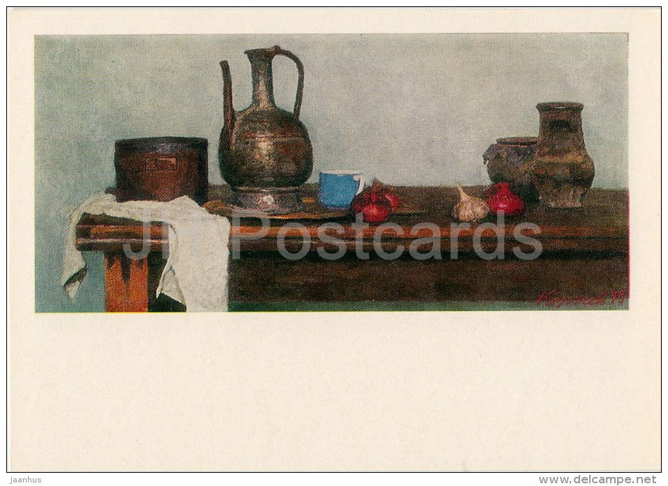painting by G. Korzhev - Metallic Dishes , 1973 - Russian art - Russia USSR - 1982 - unused