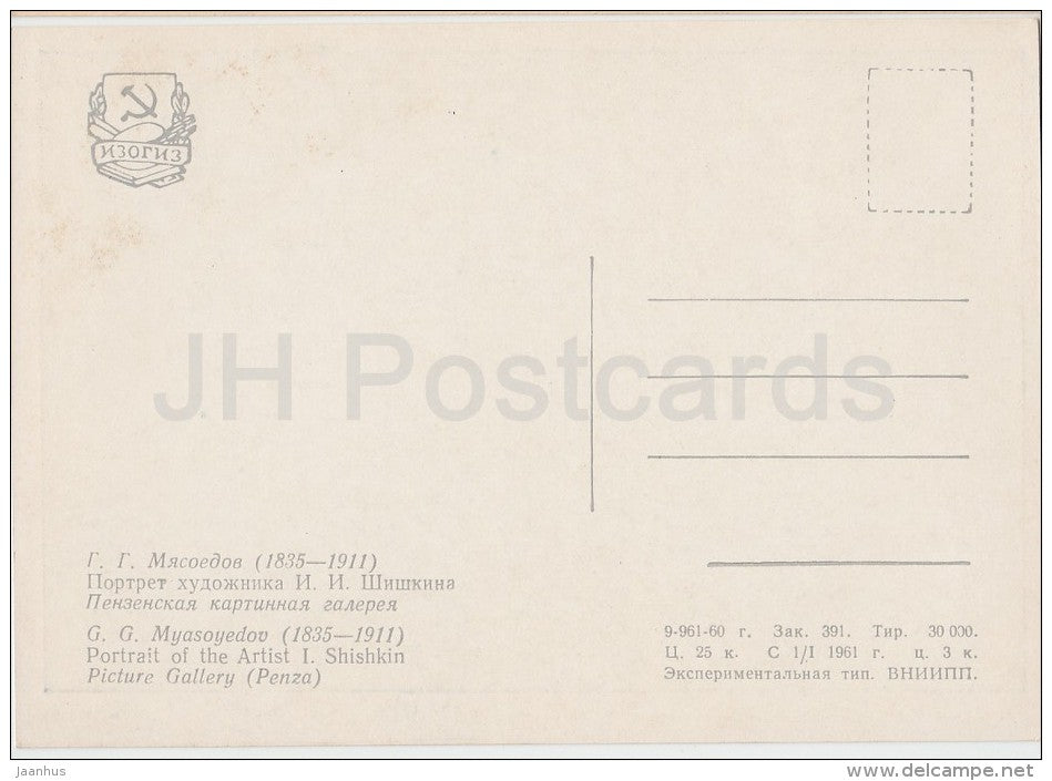 painting by G. Myasoyedov - Portrait of the artist I. Shishkin - Russian art - 1961 - Russia USSR - unused