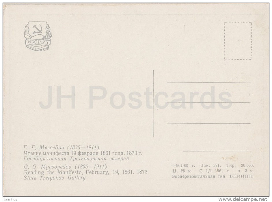 painting by G. Myasoyedov - Reading the Manifesto , February 19 1861 , 1873 - Russian art - 1961 - Russia USSR - unused