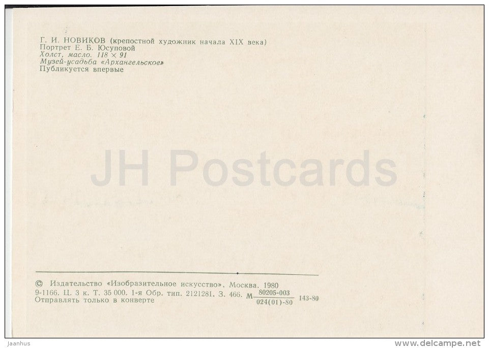 painting by G. Novikov - Portrait of Y. Yusupova - woman - Russian art - Russia USSR - 1980 - unused
