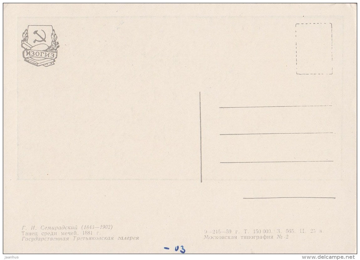 painting by G. Semiradsky - Dance among swords - naked - nude - Russian art - 1959 - Russia USSR - used