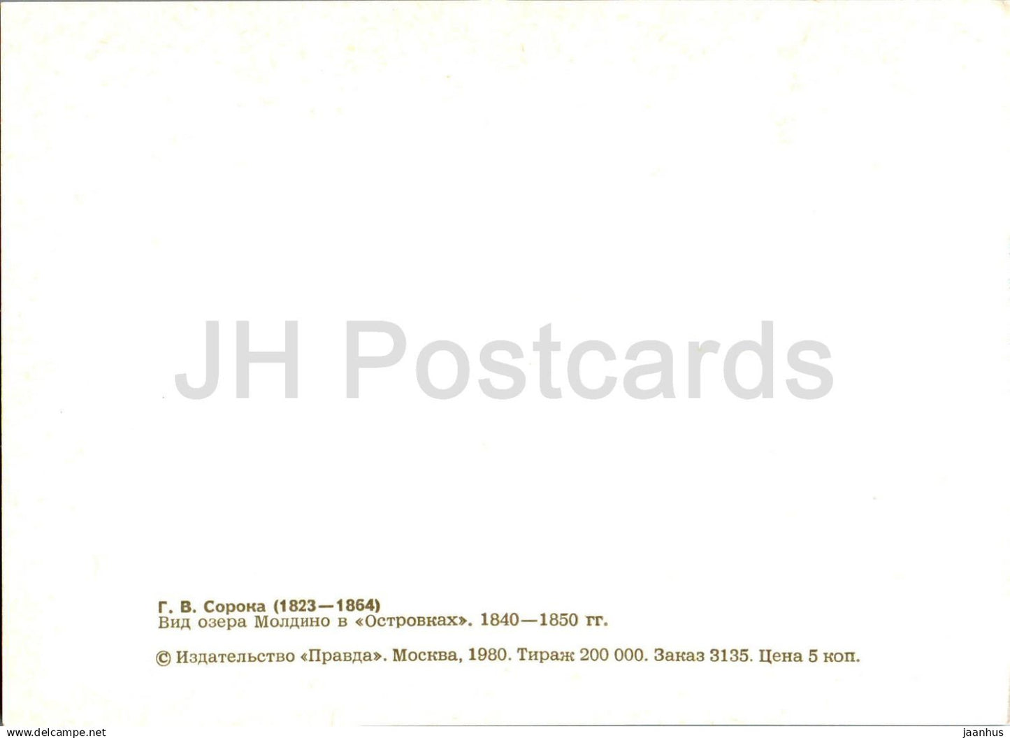 painting by G. Soroka - Lake Moldino - Ostrovki - Russian art - 1980 - Russia USSR - unused