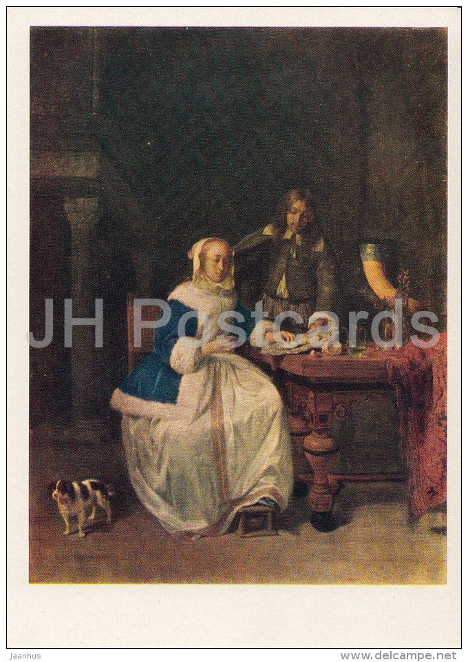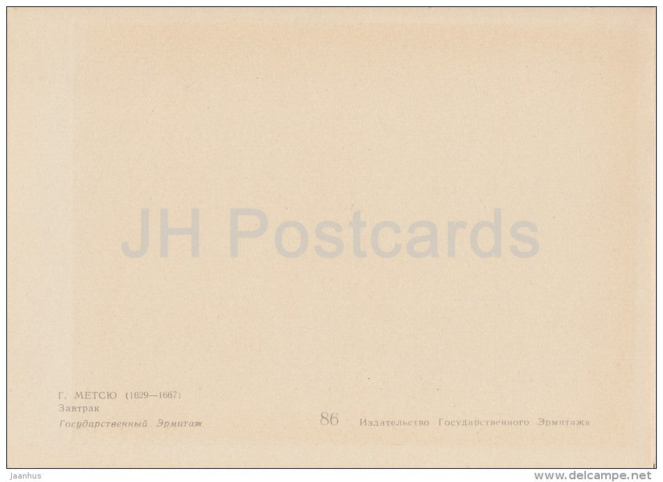 painting by Gabriel Metsu - Breakfast - dog - French art - old postcard - Russia USSR - unused