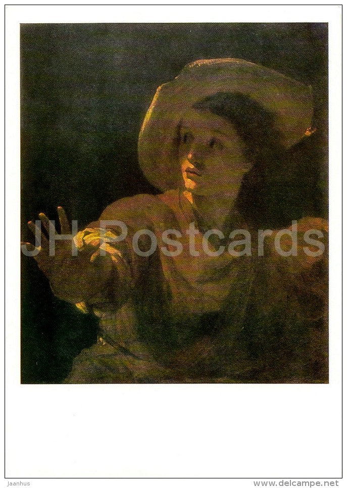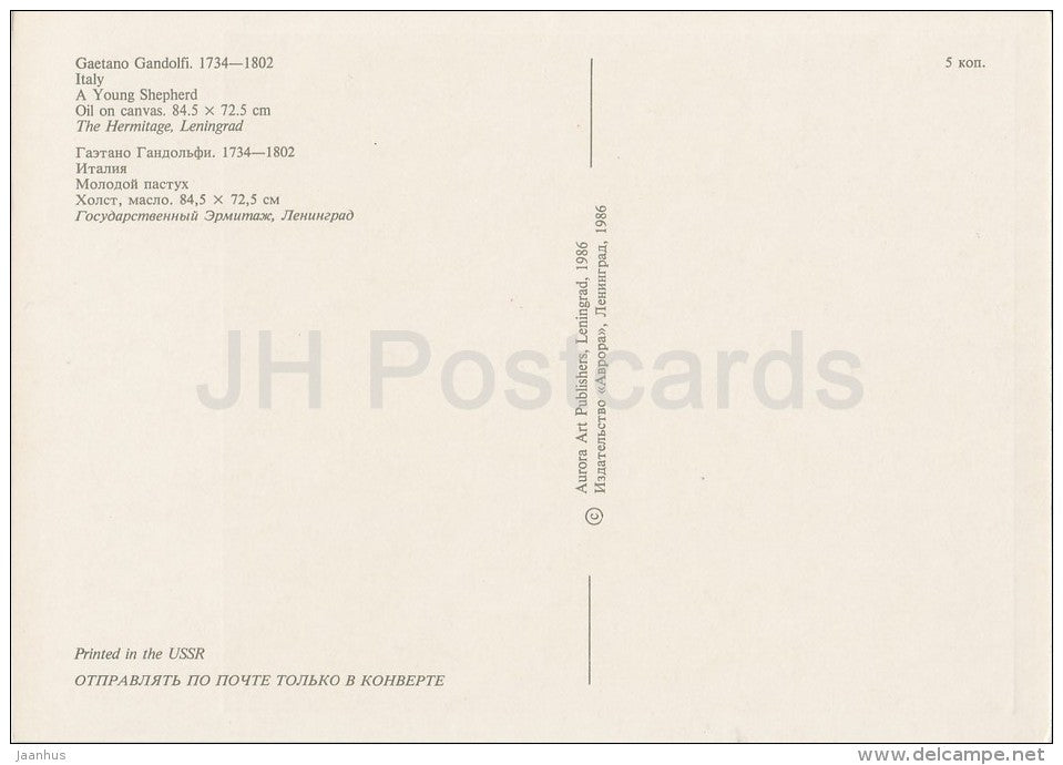 painting by Gaetano Gandolfi - A Young Shepherd - hat - Italian art - Russia USSR - 1986 - unused