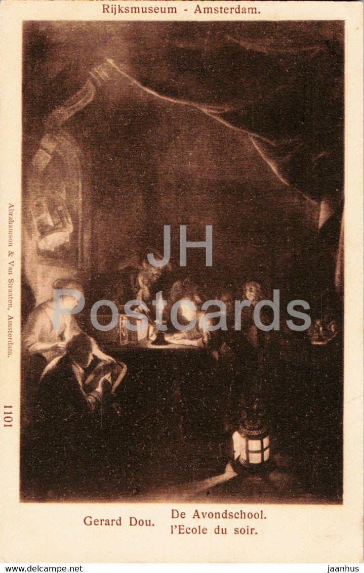 painting by Gerard Dou - Gerrit Dou - De Avondschool - Dutch art - 1101 - old postcard - Netherlands - unused