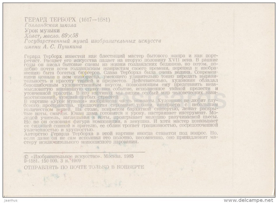 painting by Gerard ter Borch - The Music Lesson - Dutch art - Russia USSR - 1985 - unused