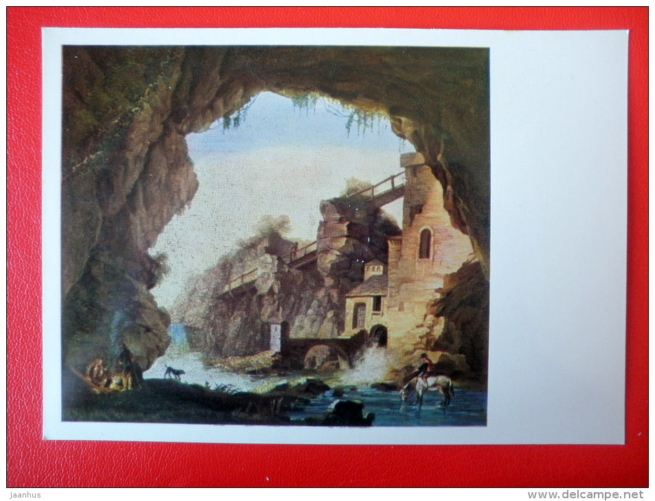 painting by Giacomo Raffaelli . A Grotto in Tivoli , 1817 - horse - italian art - unused