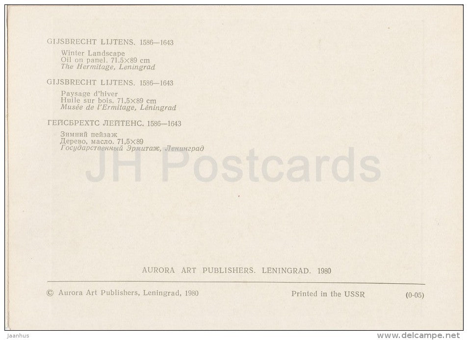 painting by Gijsbrecht Leytens - Winter Landscape - Flemish art - Russia USSR - 1980 - unused