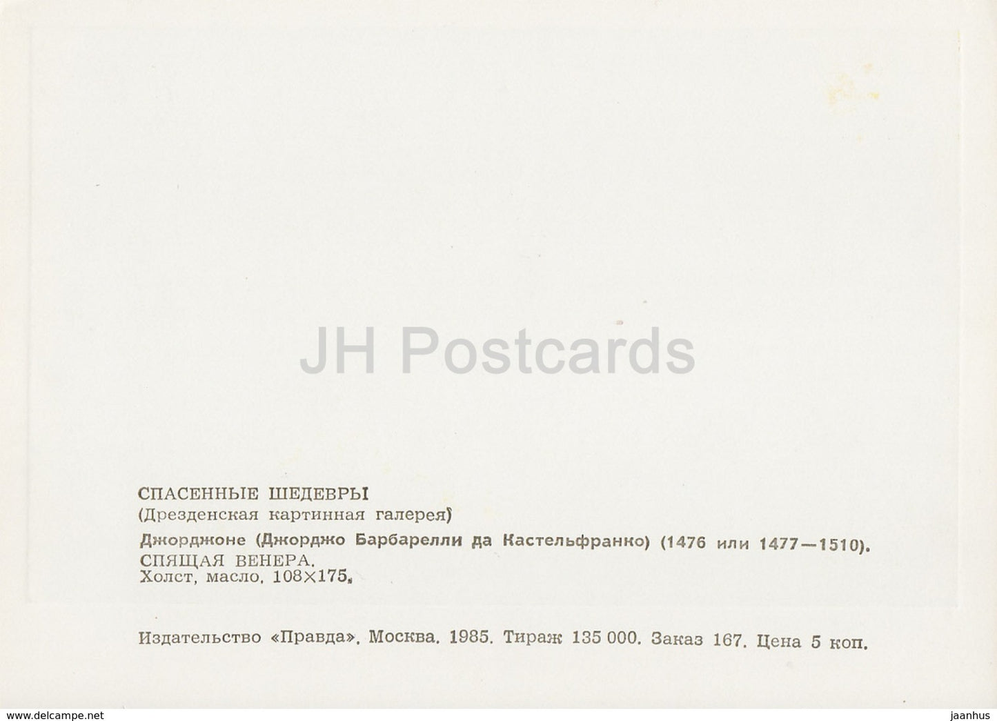 painting by Giorgione - Sleeping Venus - italian art - 1985 - Russia USSR - unused