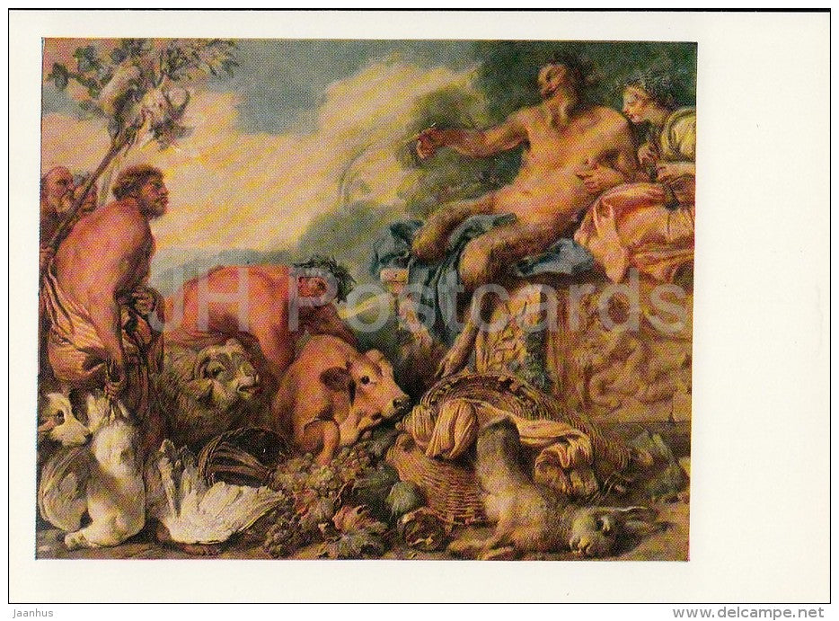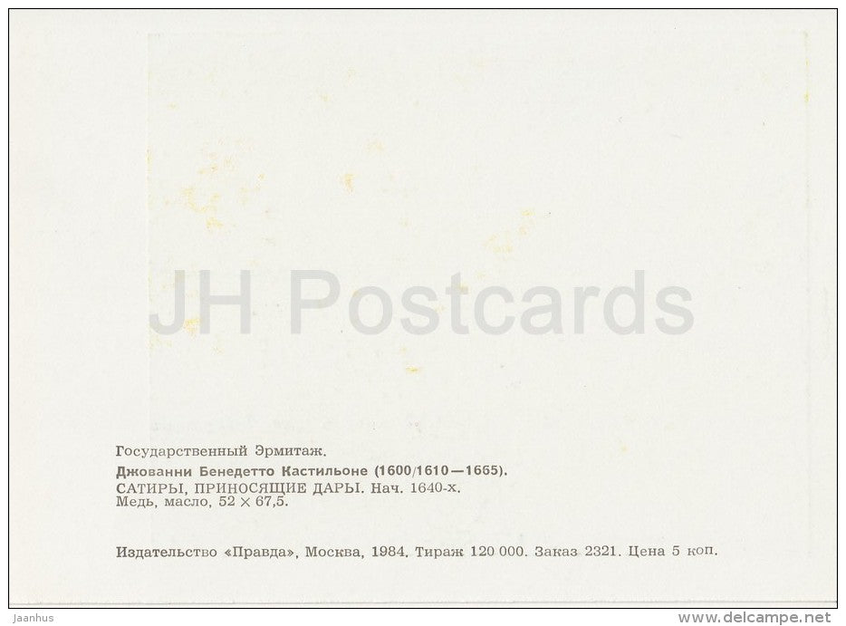 painting by Giovanni Benedetto Castiglione - Satyrs bringing a gift - nude - Italian art - Russia USSR - 1984 - unused