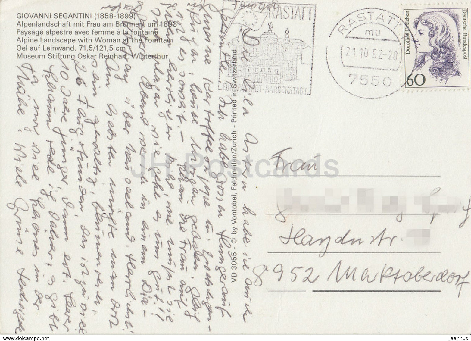 painting by Giovanni Segantini - Alpenlandschaft mit Frau am Brunnen - Italian art - 1992 - Switzerland - used