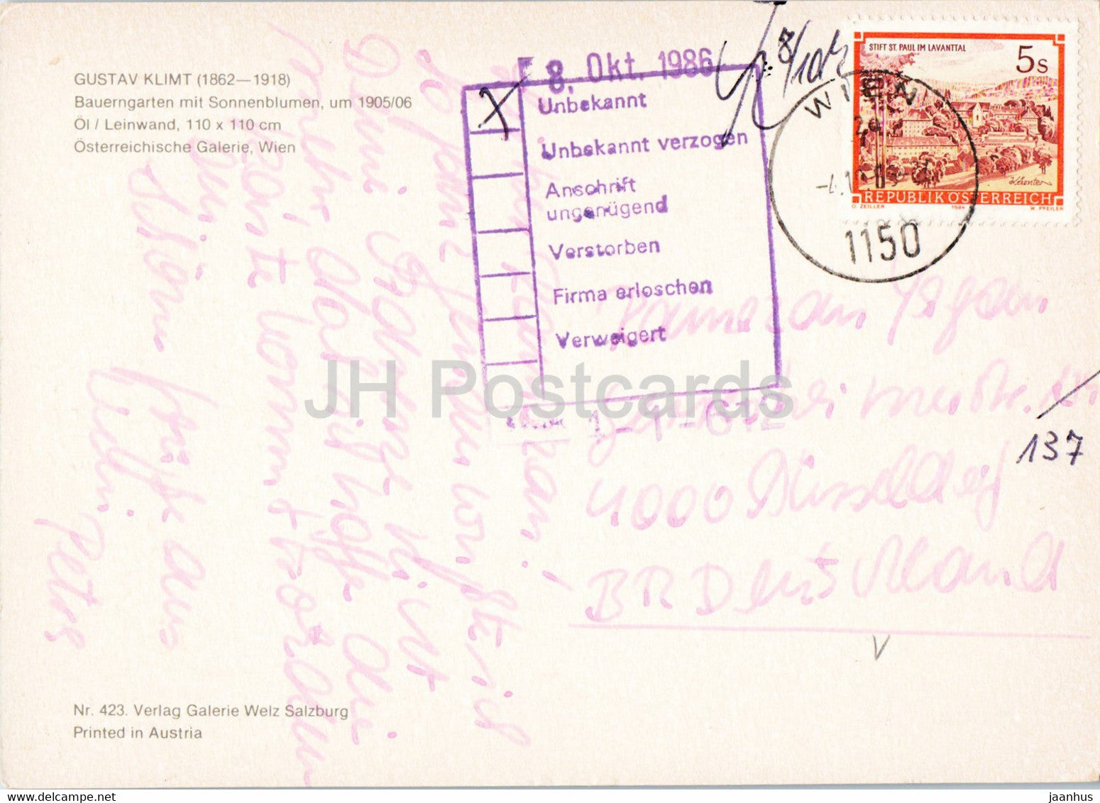 painting by Gustav Klimt - Bauerngarten mit Sonnenblumen - sunflowers - Austrian art - 1986 - Austria - used