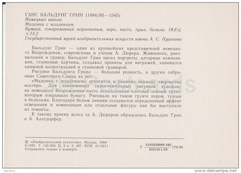 painting by Hans Baldung - Madonna with Child - German art - Russia USSR - 1984 - unused