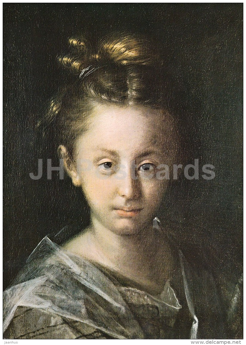 painting by Hans von Aachen - Head of a Girl ,1605 - Italian art - large format card - Czech - unused