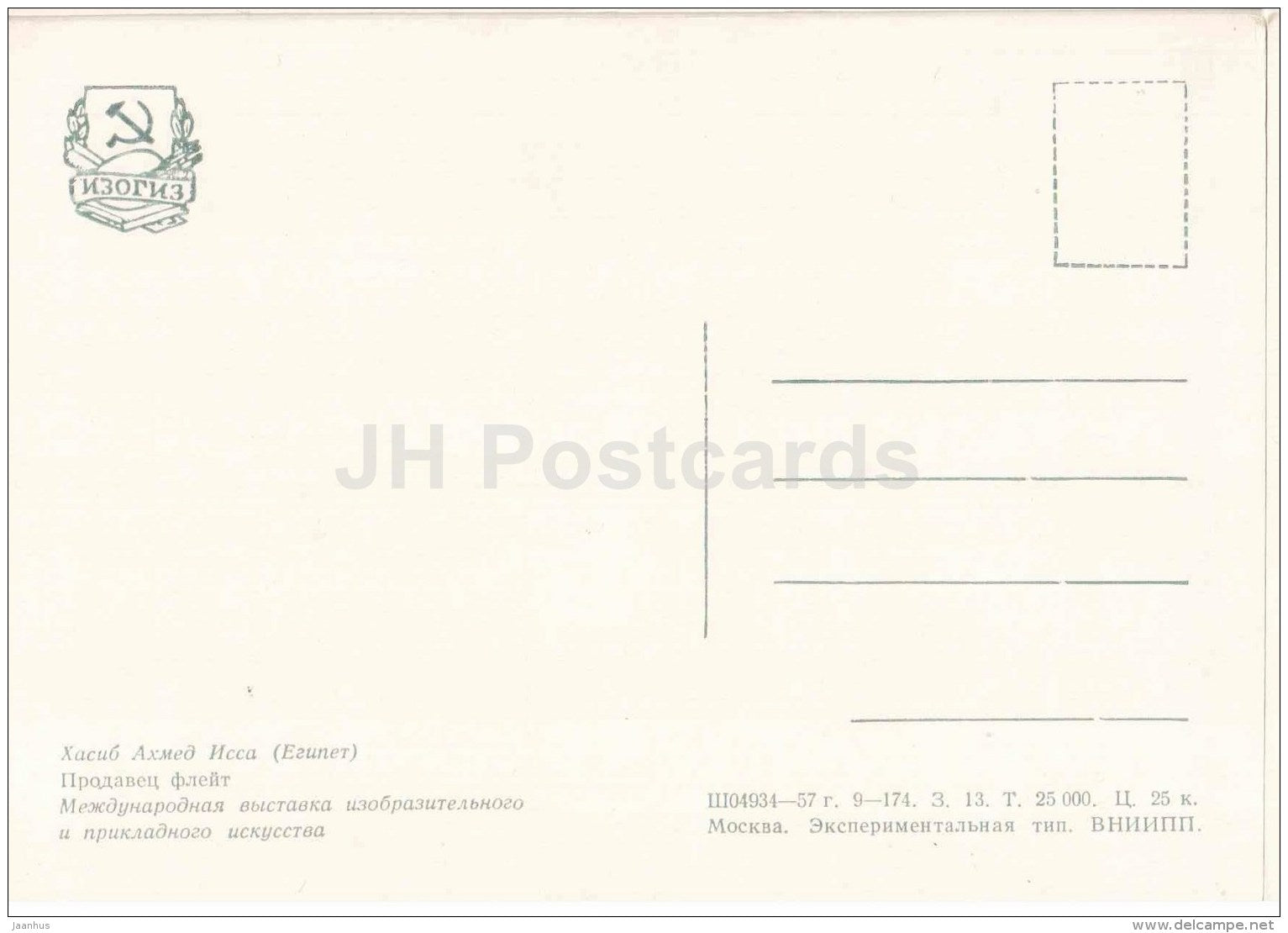 painting by Hasib Ahmed Issa - Flutes dealer - Egyptian art - 1957 - Russia USSR - unused