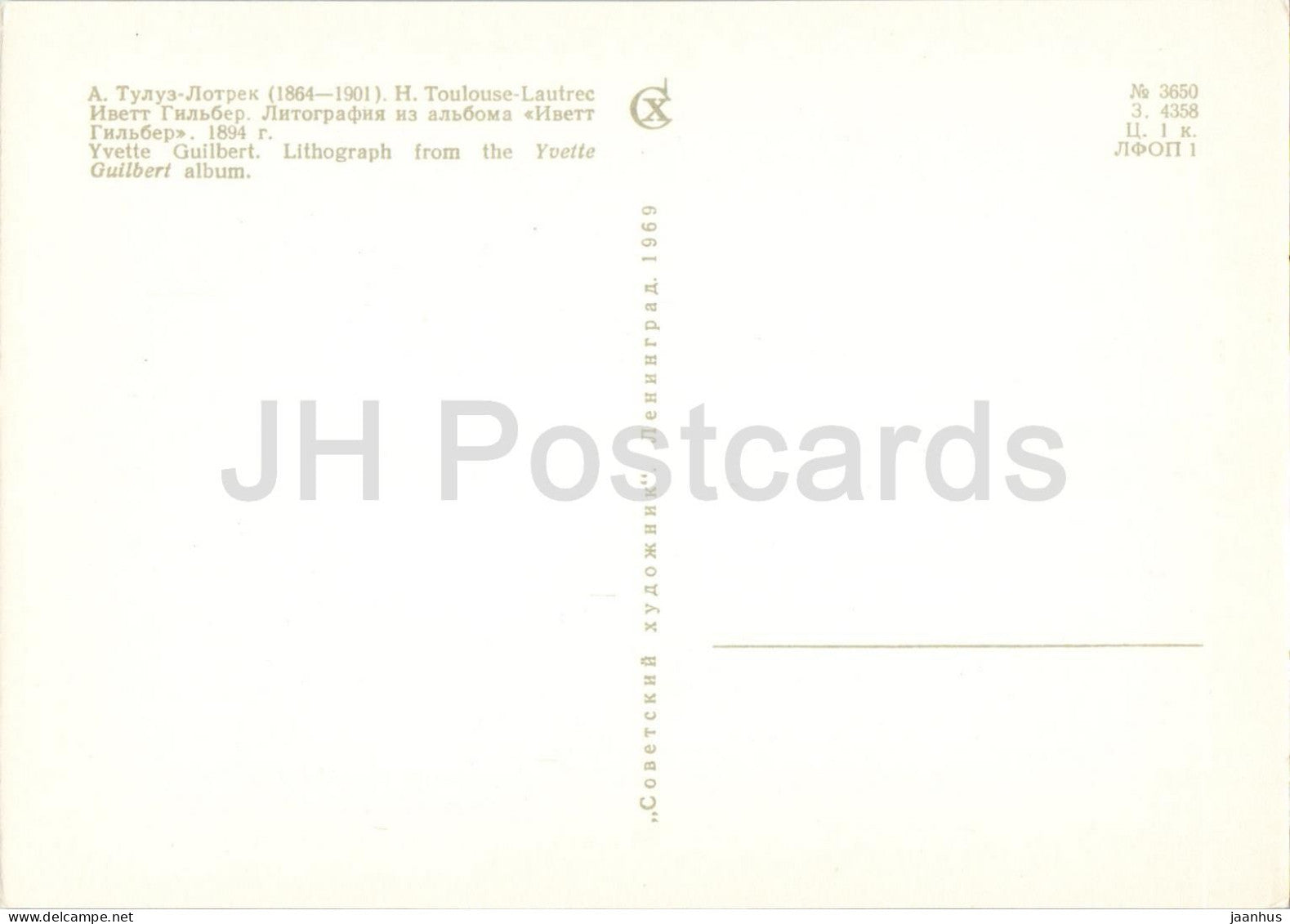painting by Henri de Toulouse Lautrec - Yvette Guilbert - French art - 1969 - Russia USSR - unused