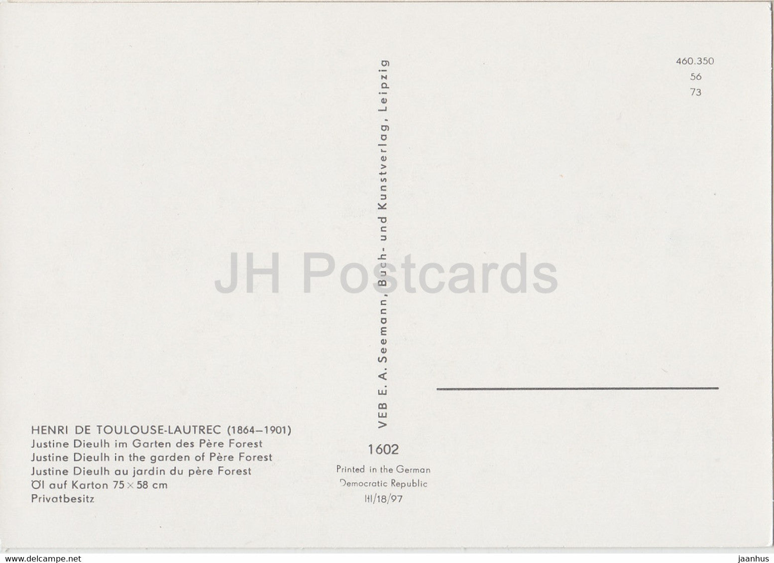 painting by Henri de Touluse Lautrec - Justine Dieulh im Garten des Pere Forest - French art - Germany DDR - unused