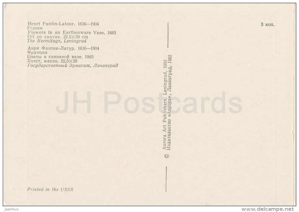 painting by Henri Fantin-Latour - Flowers in an Earthenware Vase , 1883 - French art - Russia USSR - 1982 - unused