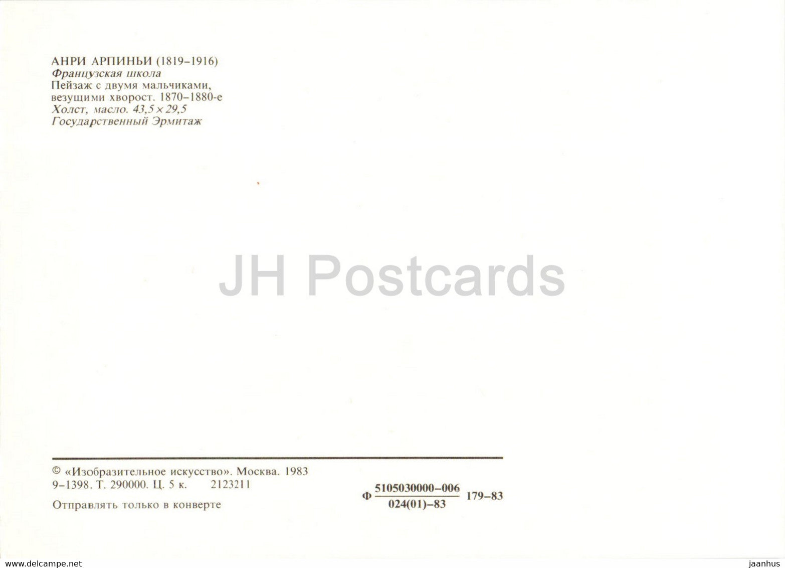 painting by Henri Harpignies - Landscape with two boys - French art - 1983 - Russia USSR - unused