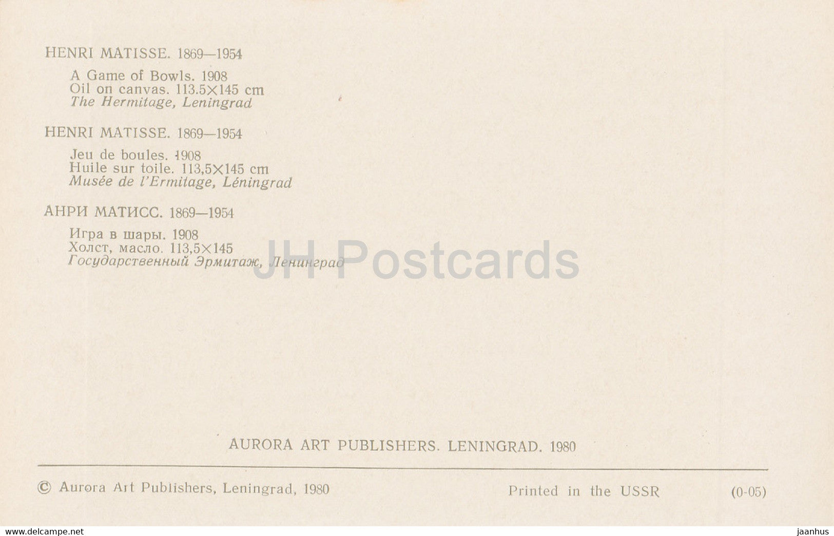 painting by Henri Matisse -A Game of Bowls - naked - nude - French art - 1980 - Russia USSR - unused