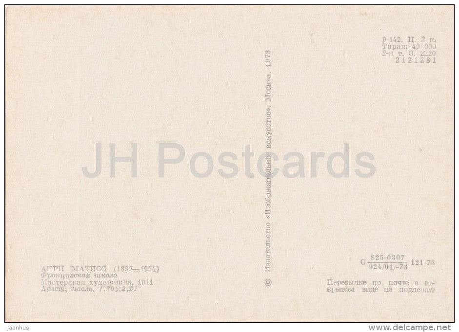 painting by Henri Matisse - Artist's Workshop , 1911 - French art - 1973 - Russia USSR - unused