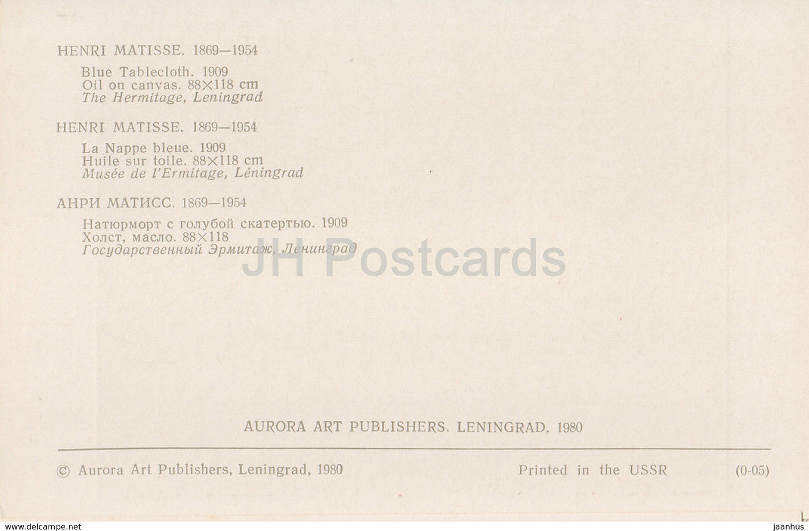 painting by Henri Matisse - Blue Tablecloth - French art - 1980 - Russia USSR - unused