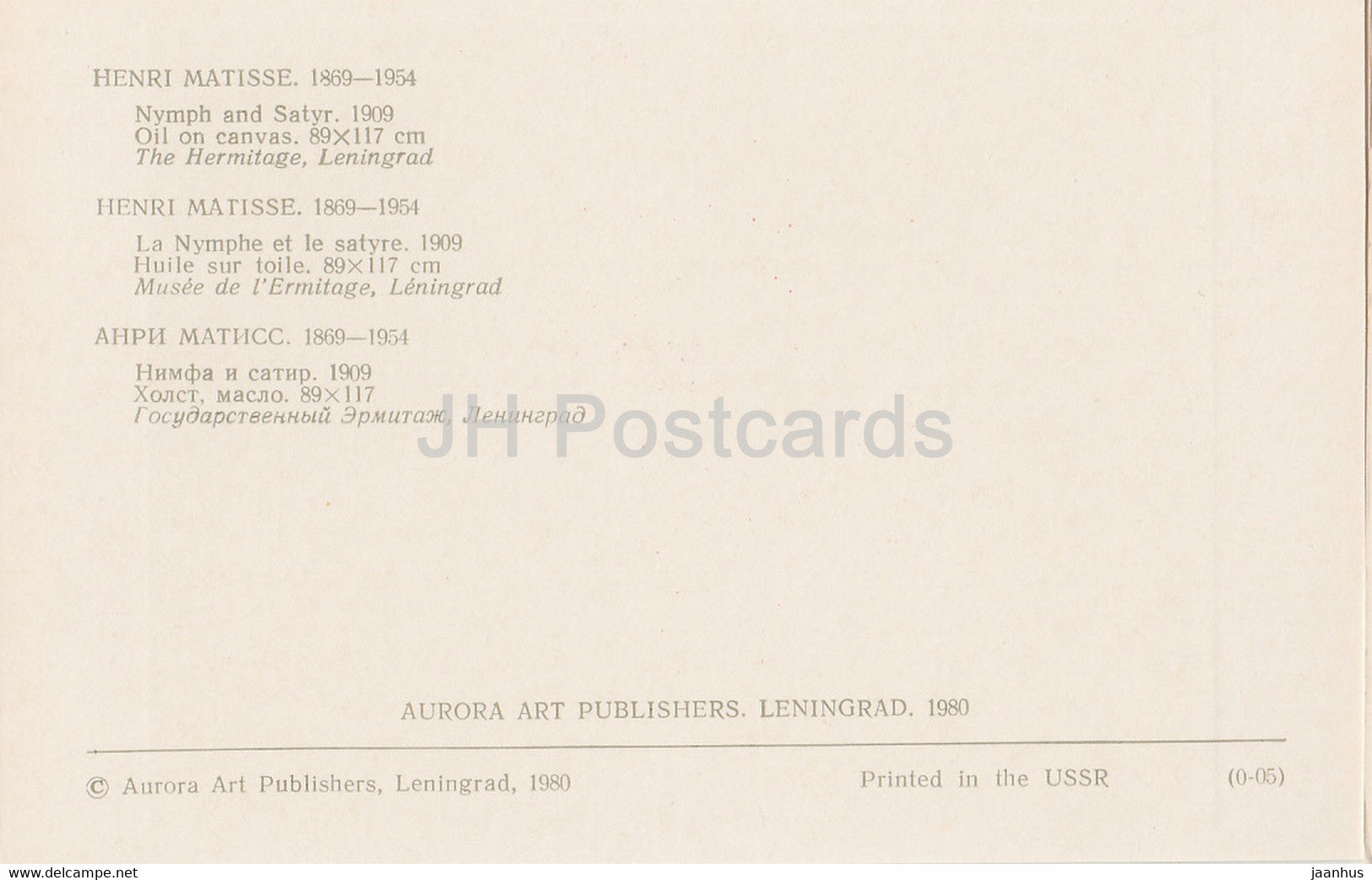 painting by Henri Matisse - Nymph and Satyr - naked - nude - French art - 1980 - Russia USSR - unused