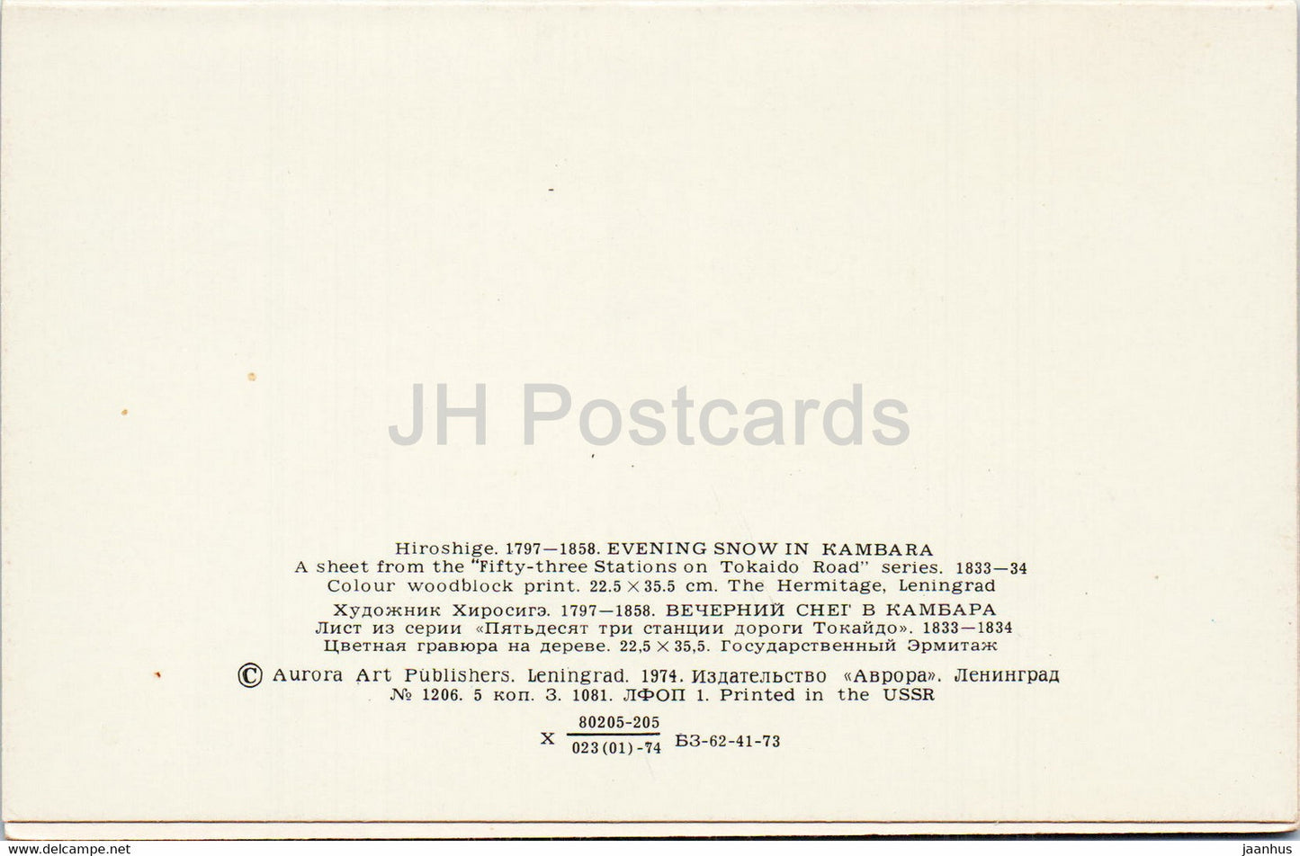 painting by Hiroshige - Evening Snow in Kambara - Japanese art - 1974 - Russia USSR - unused