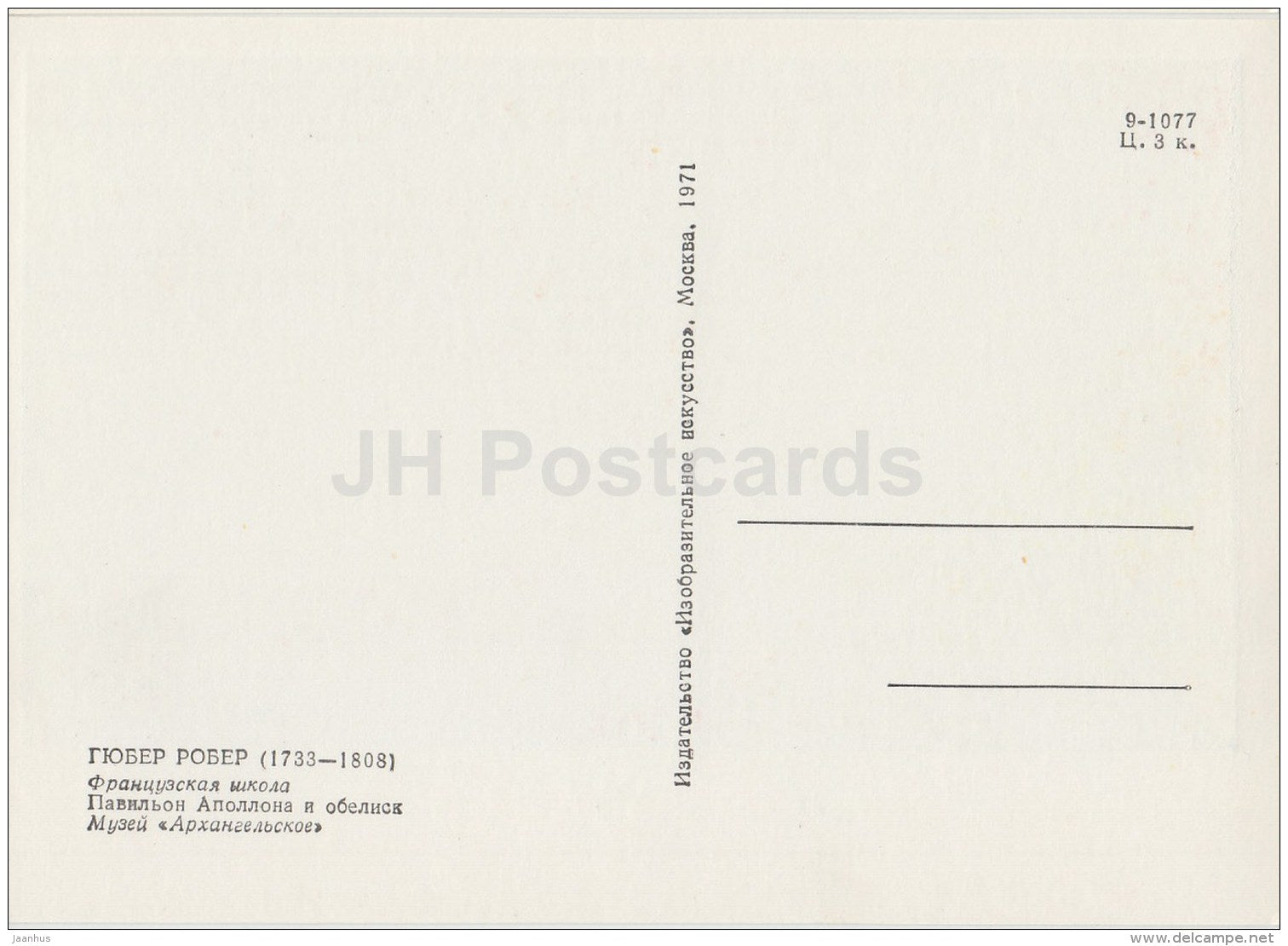painting by Hubert Robert - Apollo pavilion and obelisk - French art - 1971 - Russia USSR - unused