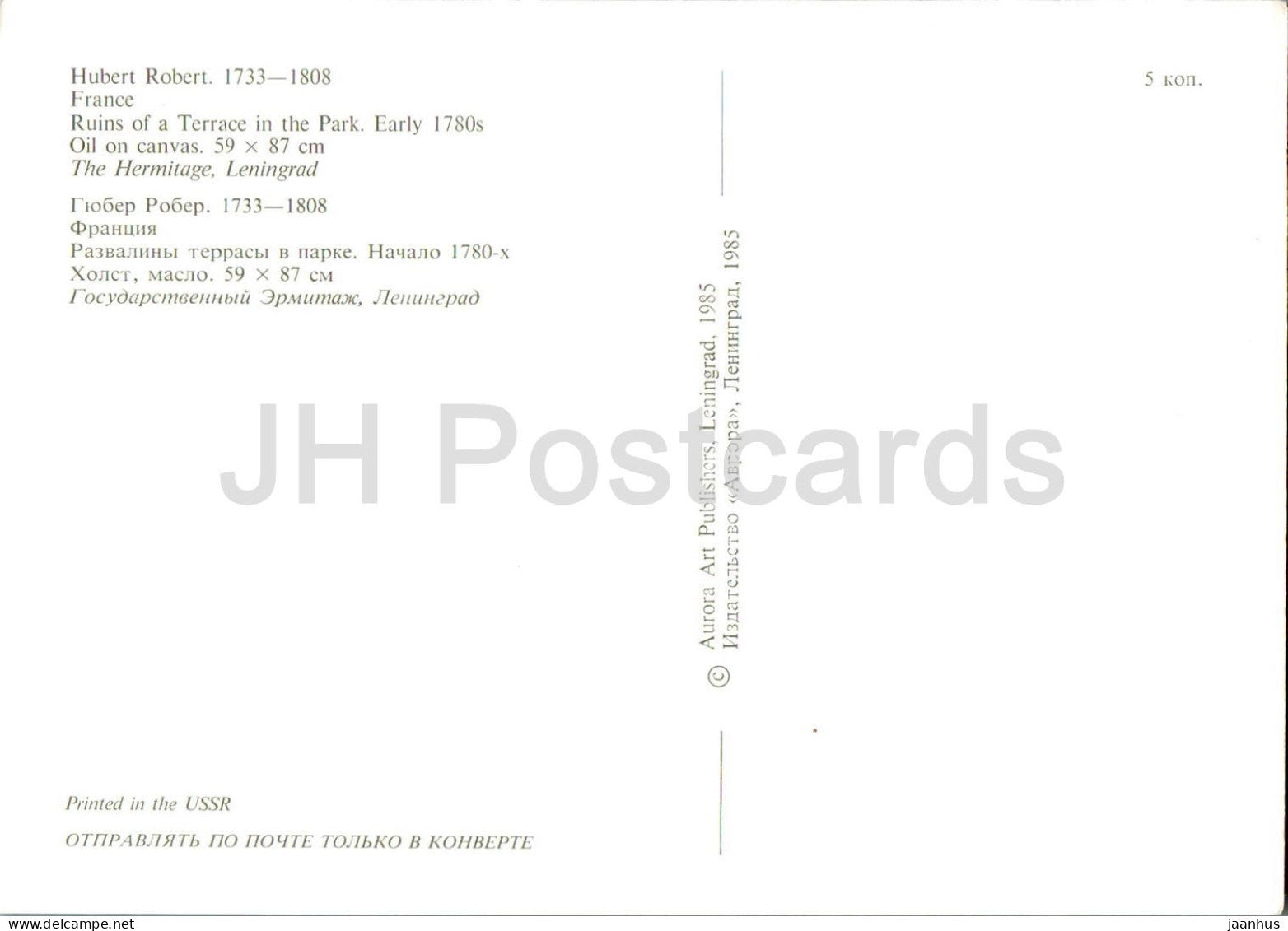 painting by Hubert Robert - Ruins of the Terrace in the Park - horse sculpture French art - 1985 - Russia USSR - unused