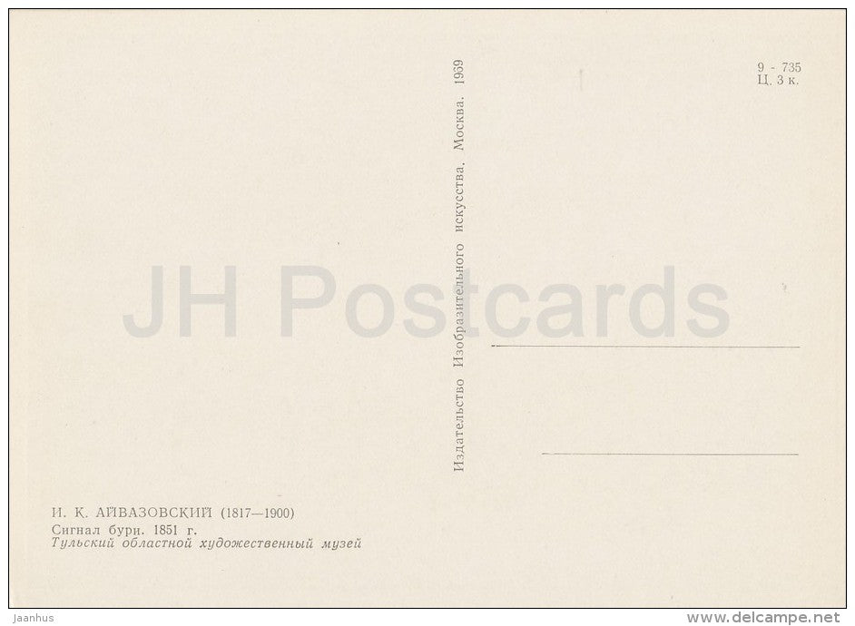 painting by I. Aivazovsky - Storm Signal , 1851 - sailing ship - Russian art - 1969 - Russia USSR - unused