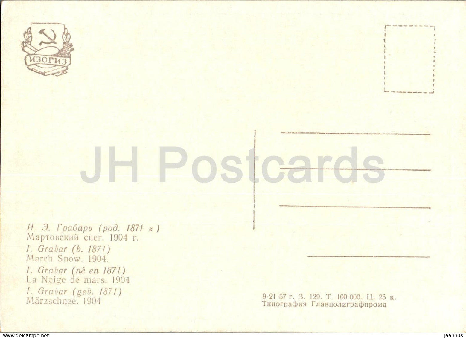 painting by I. Grabar - March Snow - Russian art - 1957 - Russia USSR - unused