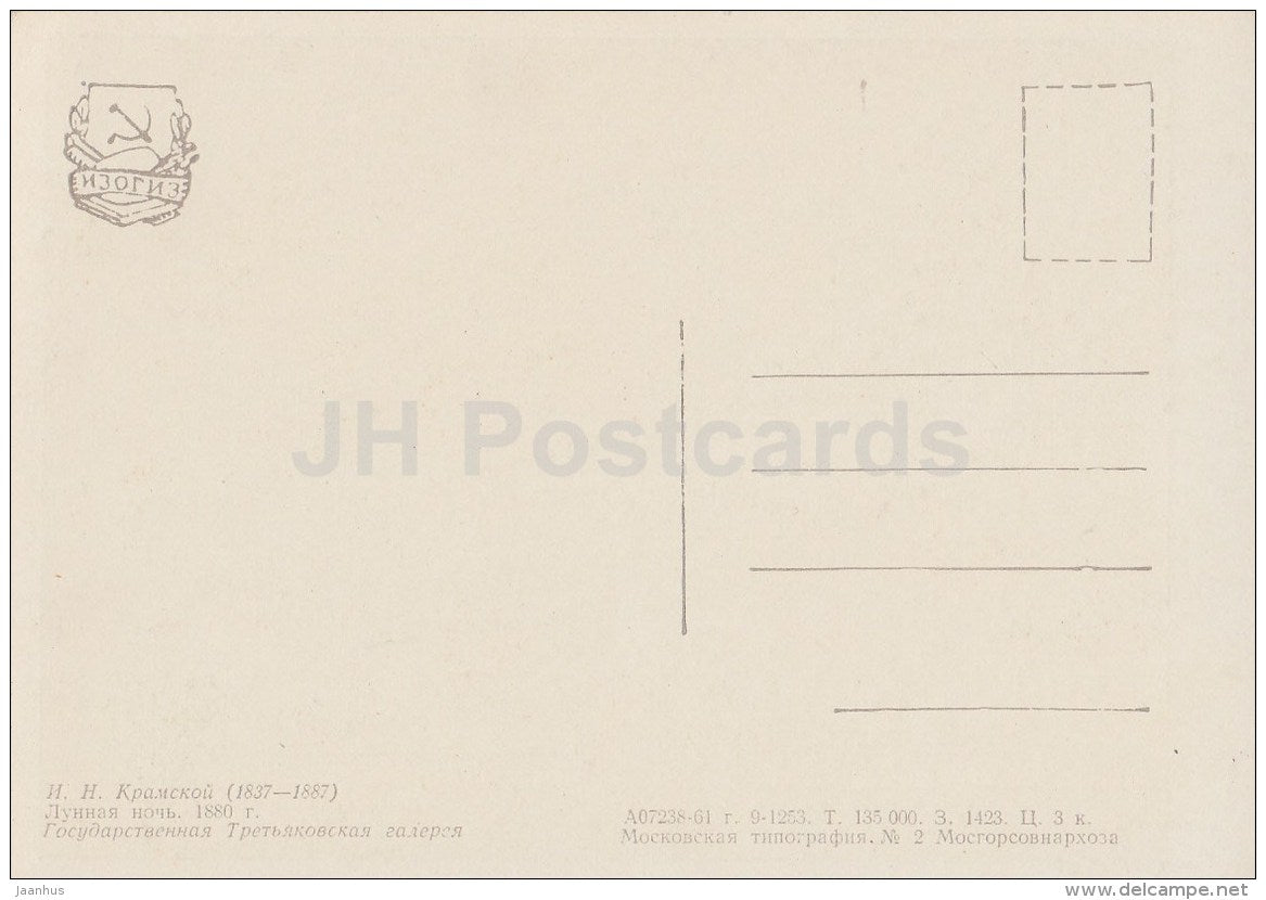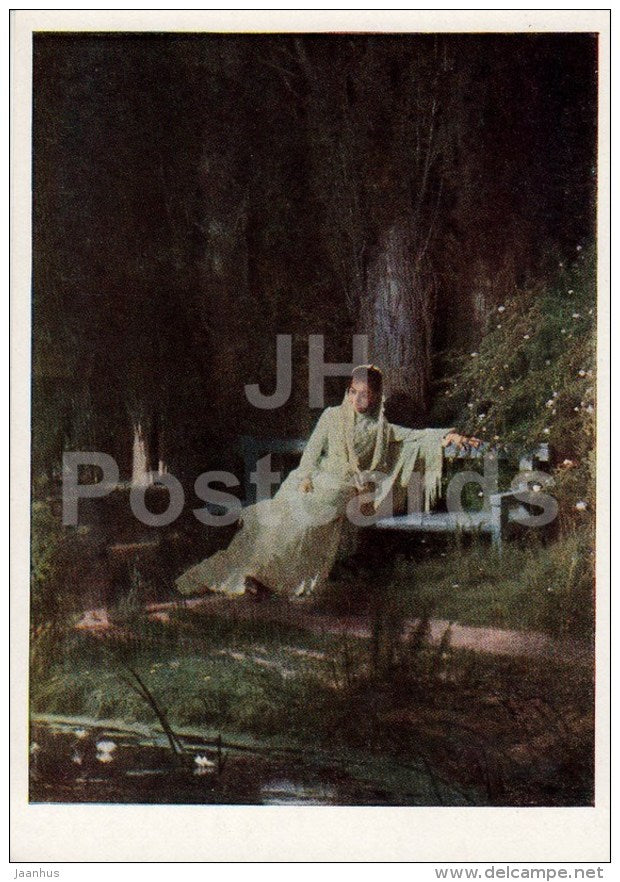 painting by I. Kramskoy - 1 - Moonlight night , 1889 - woman - Russian art - 1961 - Russia USSR - unused