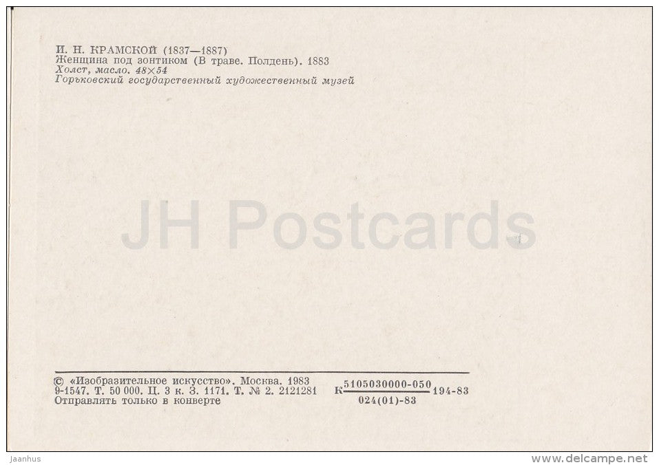 painting by I. Kramskoy - Woman with Umbrella , 1883 - Russian art - Russia USSR - 1983 - unused