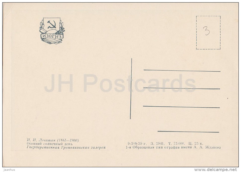 painting by I. Levitan - Sunny Autumn Day - Russian art - 1959 - Russia USSR - unused