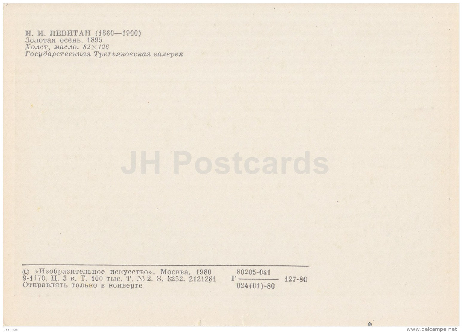 painting by I. Levitan - The Golden Autumn , 1895 - river - Russian Art - 1980 - Russia USSR - unused
