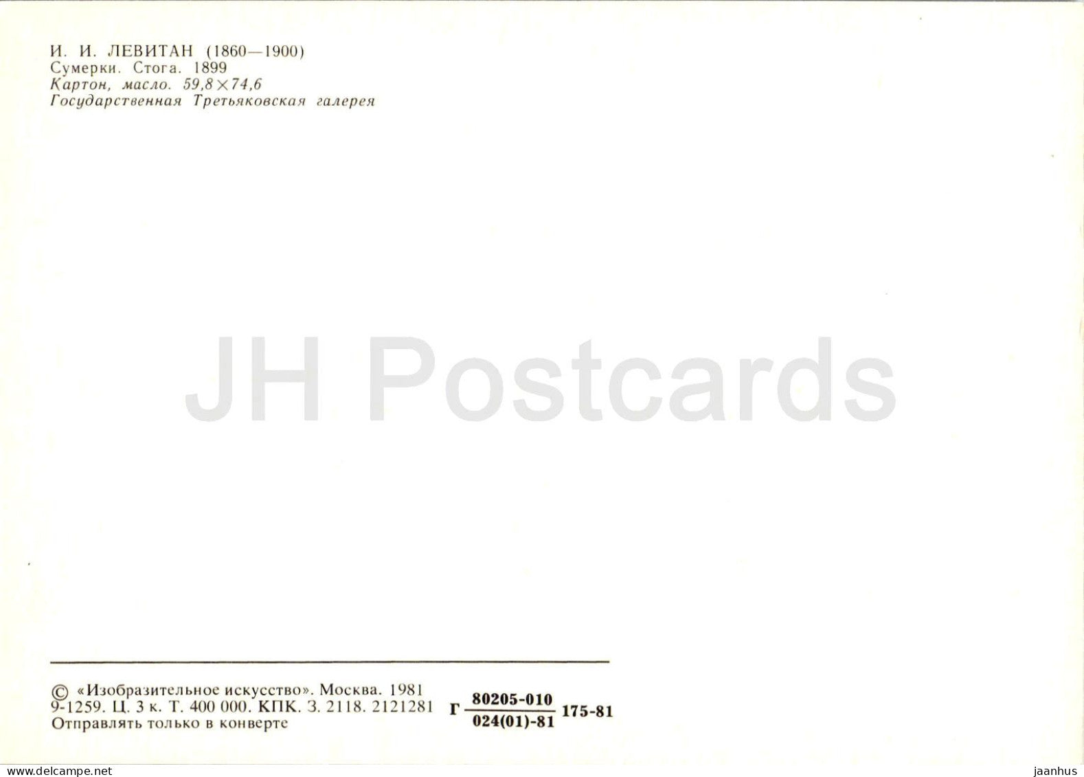 painting by I. Levitan - Twilight. Haystacks - Russian art - 1981 - Russia USSR - unused