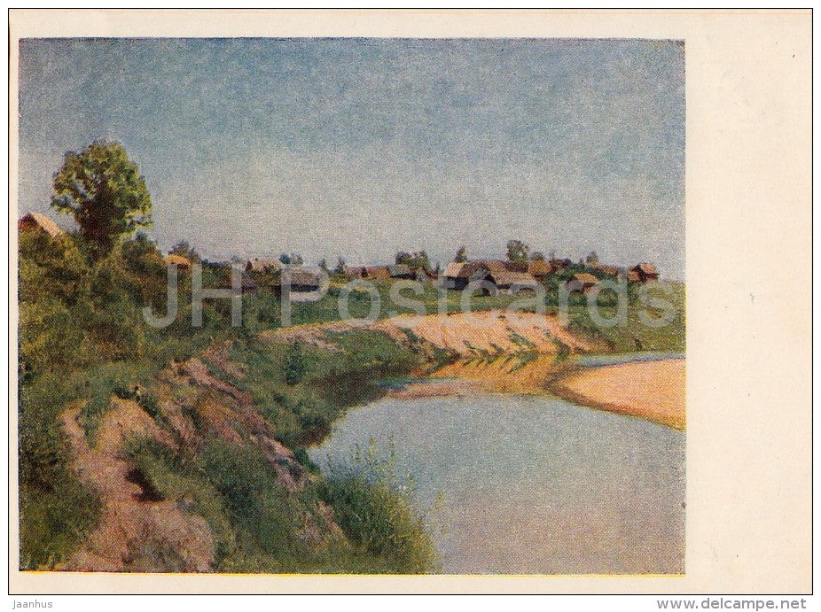 painting by I. Levitan - Village on the bank of the river - Russian art - 1954 - Russia USSR - unused