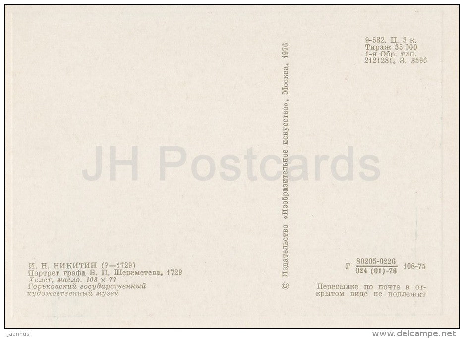 painting by I. Nikitin - Portrait of Count Sheremetyev , 1729 - Russian art - 1976 - Russia USSR - unused